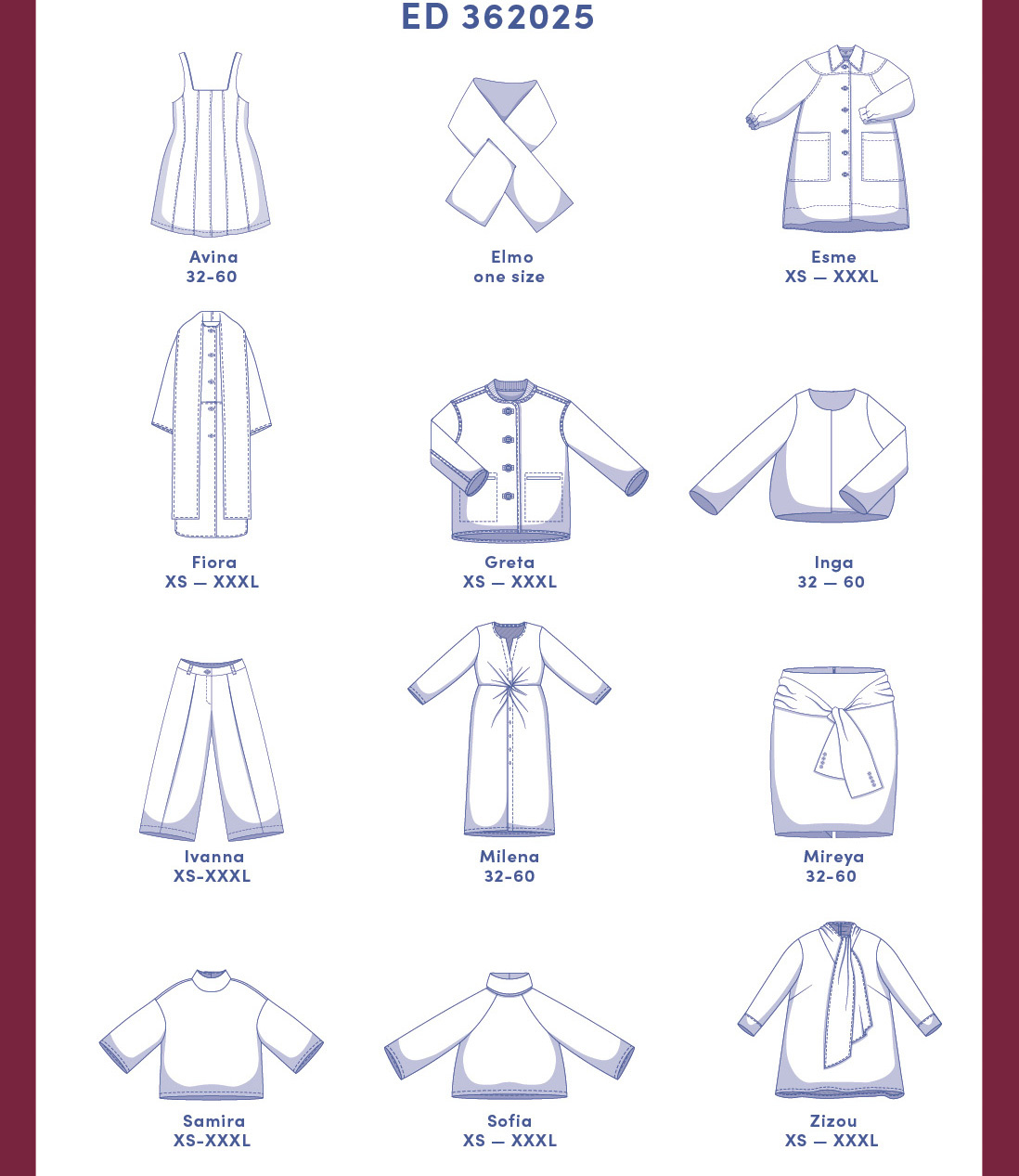 From Avina's modern corset to Milena's elegant twist: in Fibre Mood 36, you'll find everything you need to celebrate the year in style. Warm, winter-ready coats like Esme, Fiora, and Inga will keep you cozy, while Greta, Mireya, and Ivanna spark your creativity with unique details and playful silhouettes. Sofia is the cozy essential on cold days, and Samira and Zizou create elegant looks for warm, festive moments. Complete your winter outfit with trendy Elmo, and you're all set for a fantastic end of the year.