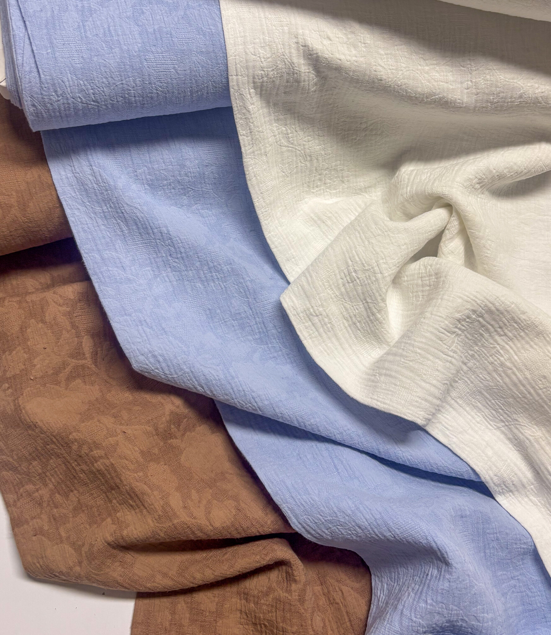 Beautiful quality double gauze with a woven pattern. Perfect for dresses, tops, T-shirts, and baby and children's items (nests, blankets, etc.). Wonderfully soft. OEKO-Tex certified.