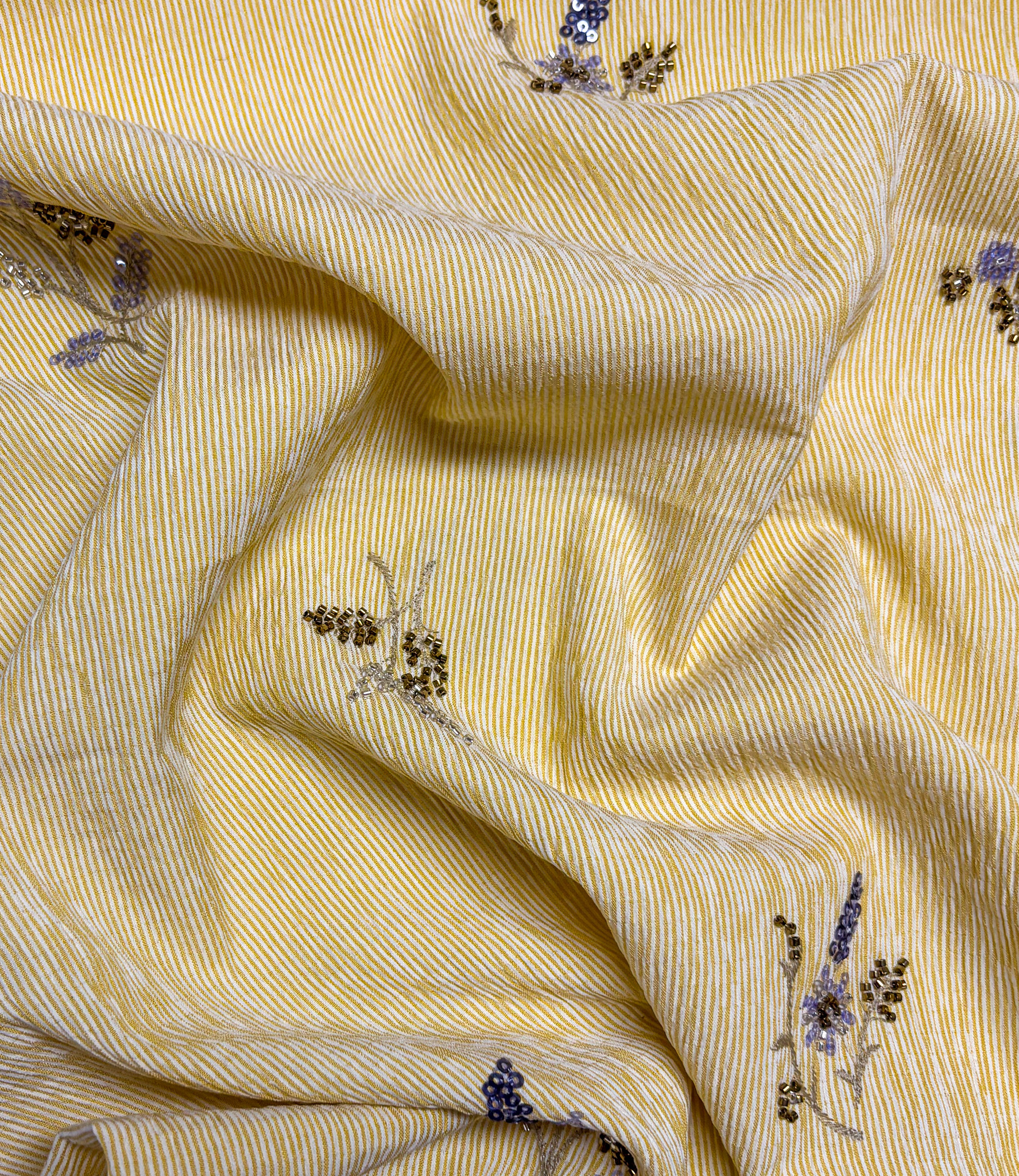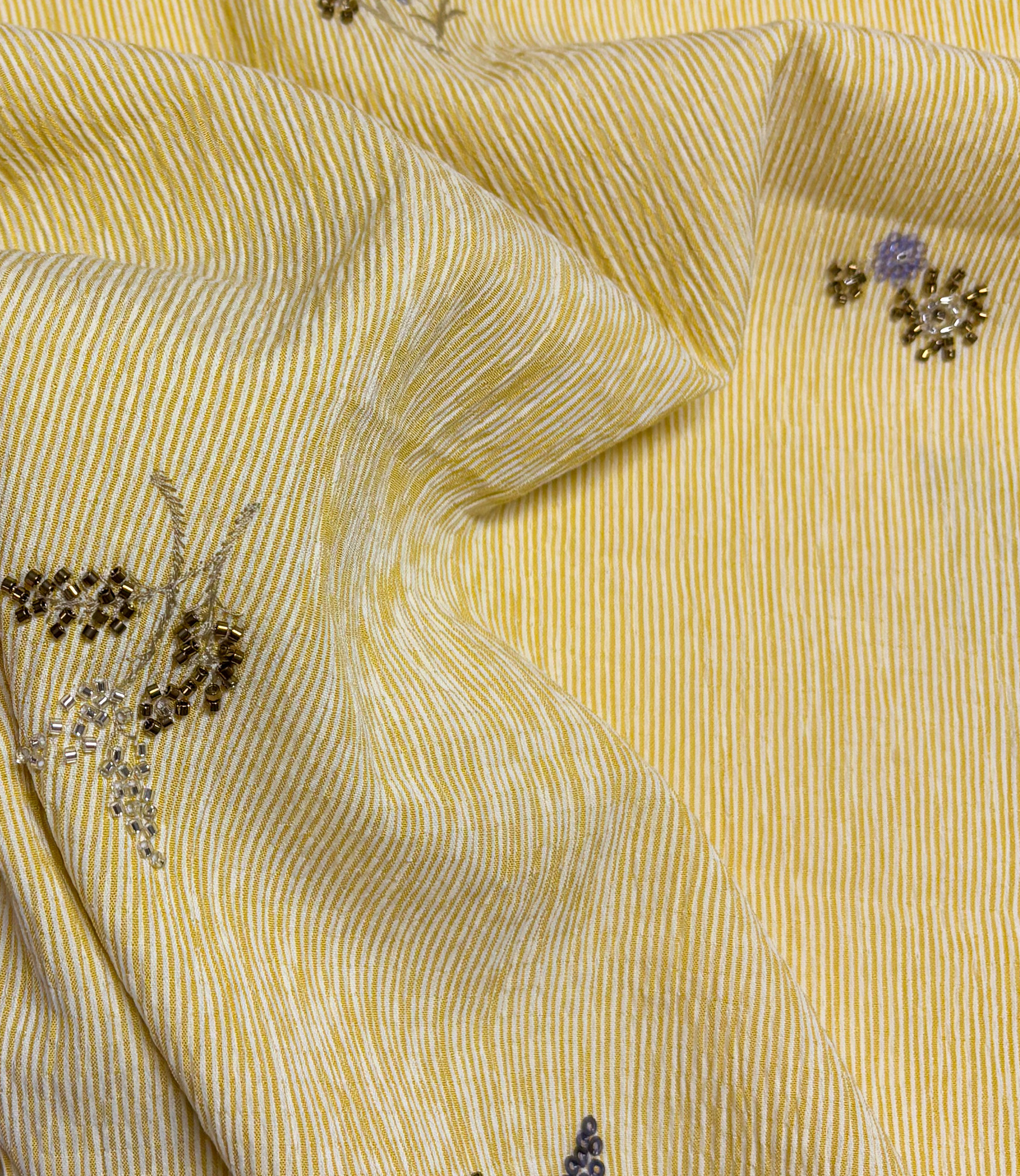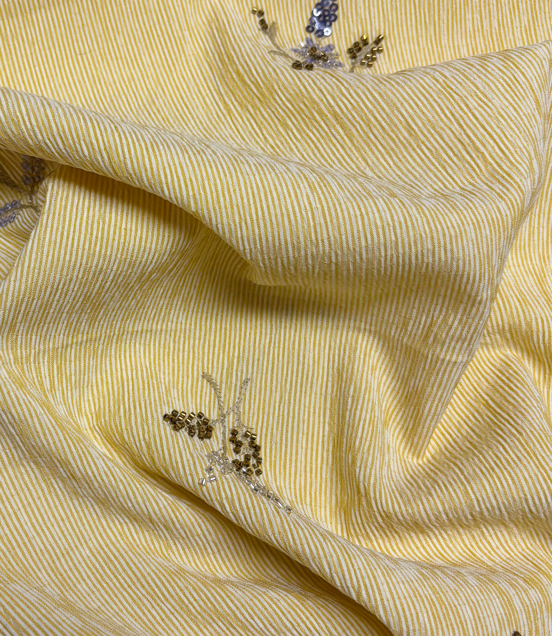 yellow striped with embroidered sequins - viscose mix - Madeline De Stoffenmadam