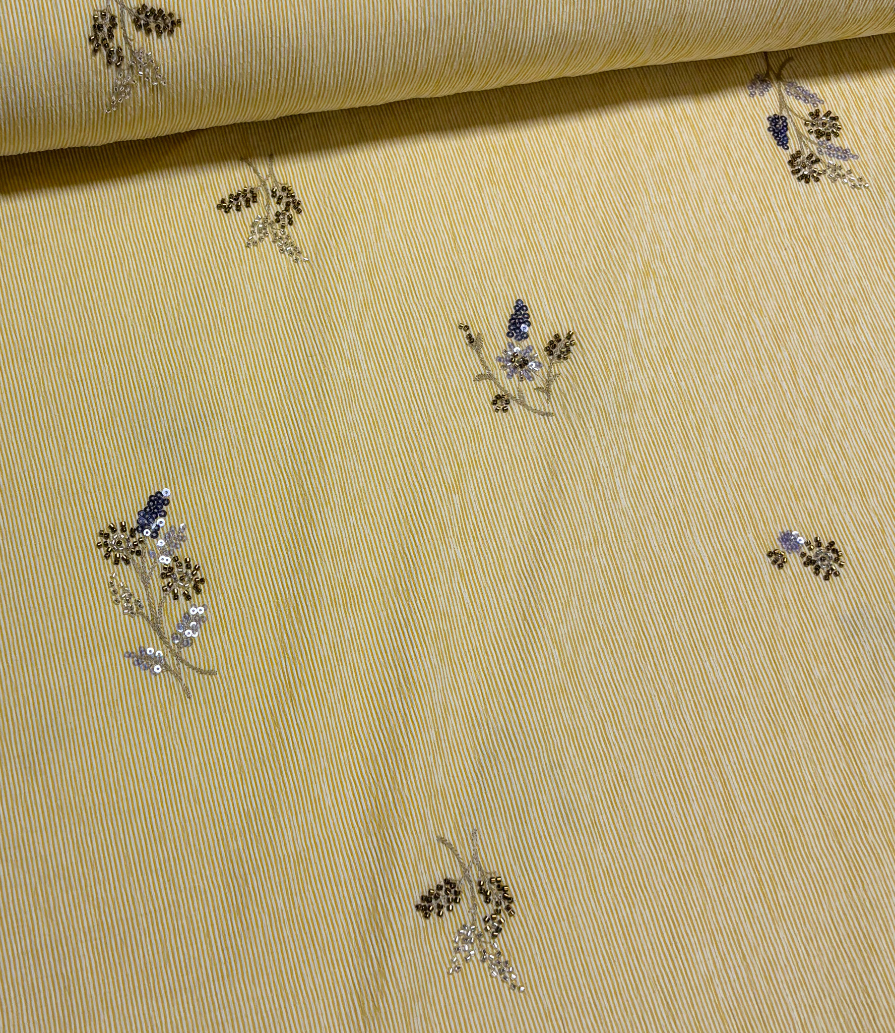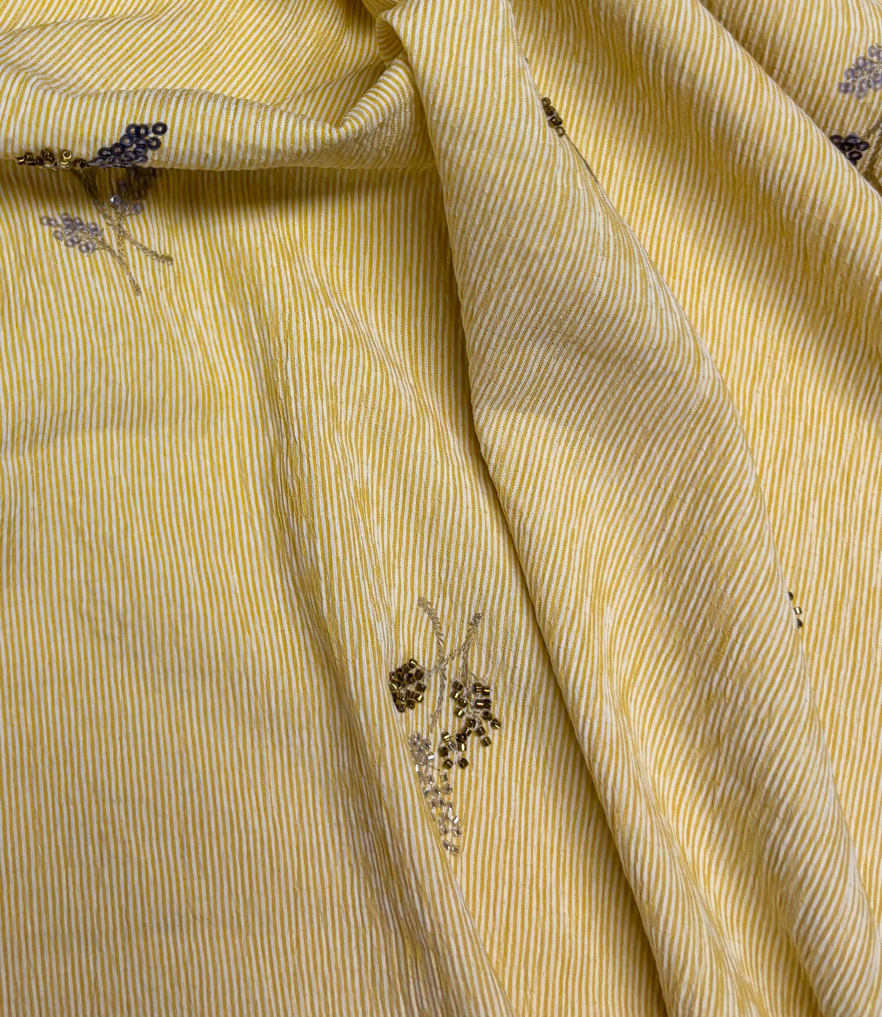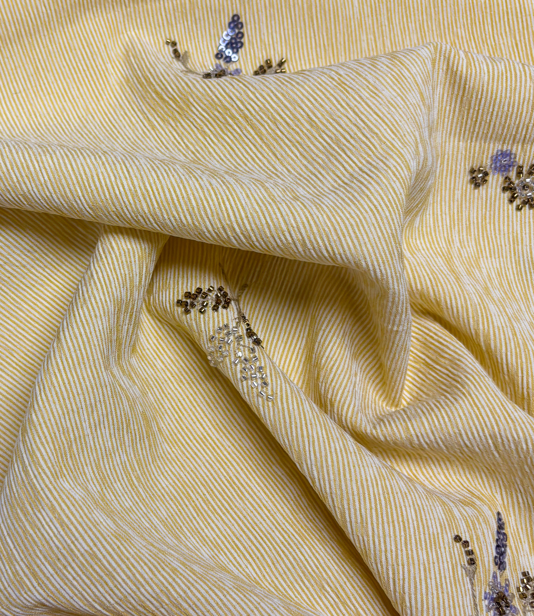 yellow striped with embroidered sequins - viscose mix - Madeline De Stoffenmadam