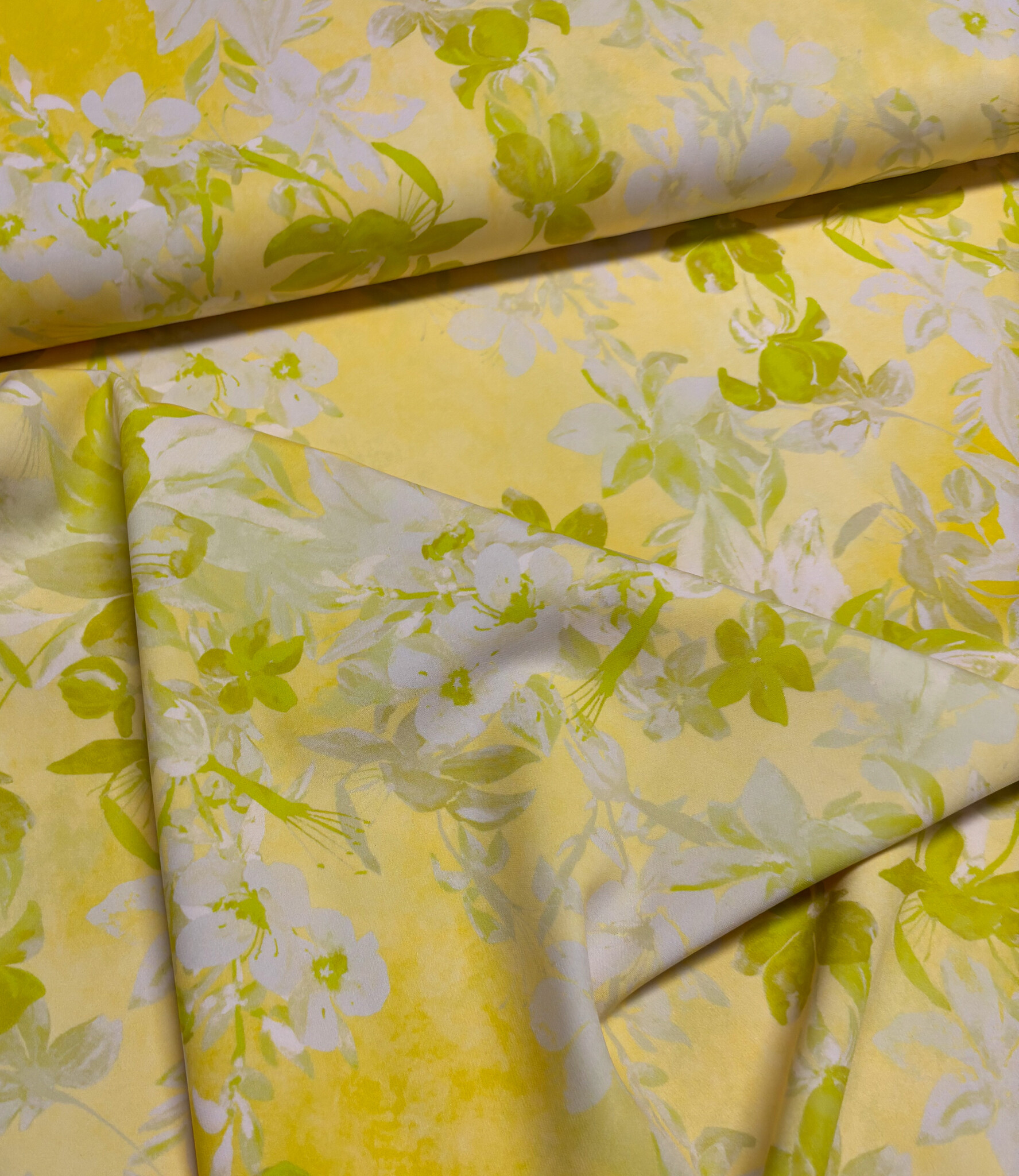 yellow / lime print - stylish woven fabric - wrinkle-free - high quality (Italy) - Madeline De Stoffenmadam