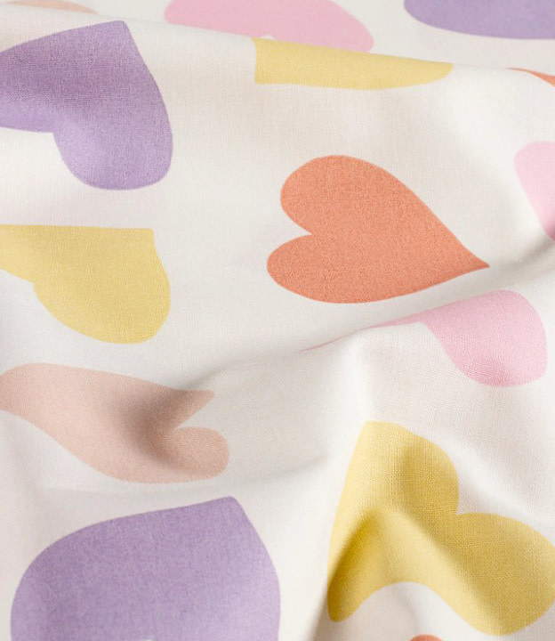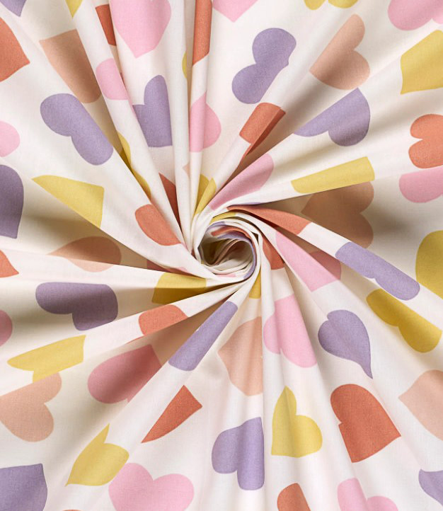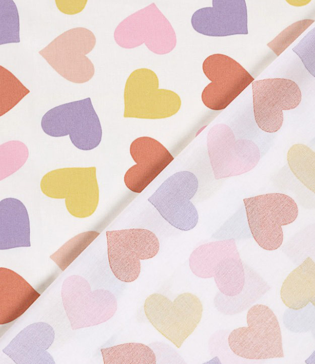 A beautiful cotton with colored hearts.