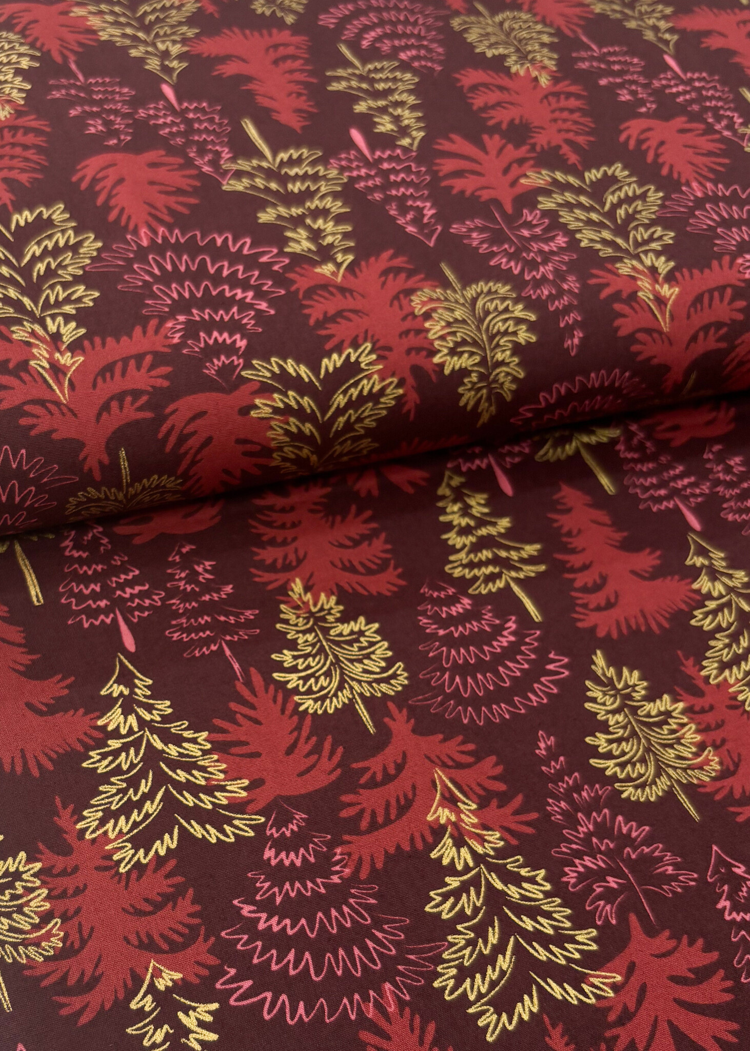 Golden Christmas trees - burgundy cotton - Madeline De Stoffenmadam