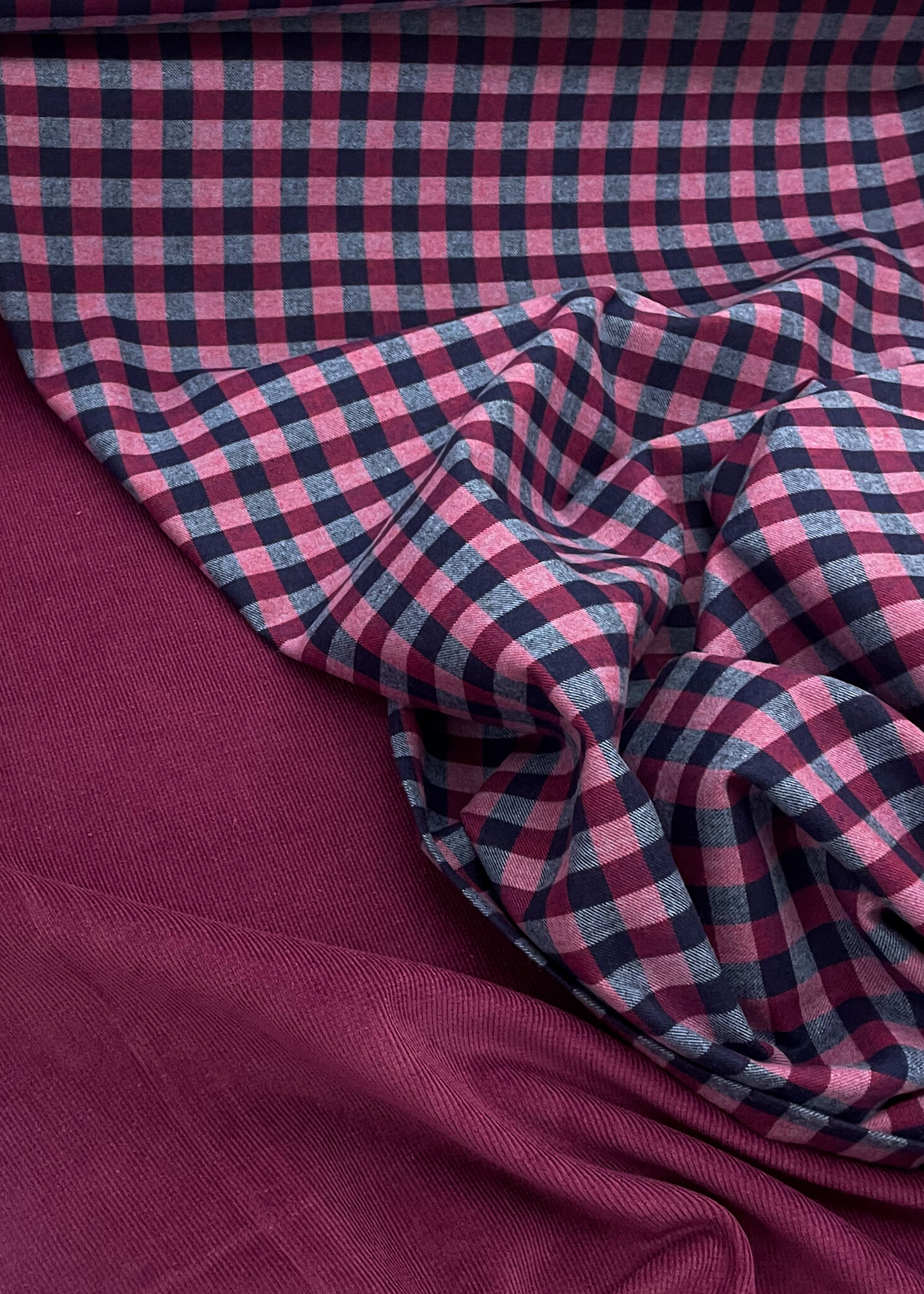 A soft corduroy with very narrow ribs, slightly stretchy. Perfect for trousers, skirts, jackets, for young and older. Also nice for a salopette, cushions or a bag.