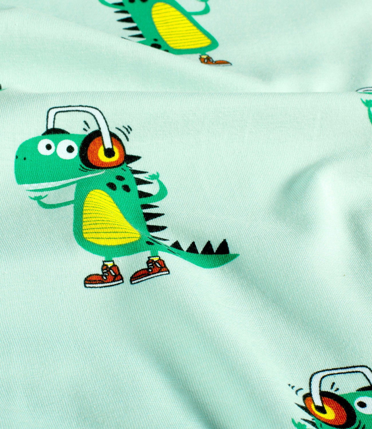 A jersey with fun dinosaurs. Perfect for T-shirts, rompers, leggings, dresses, and more.