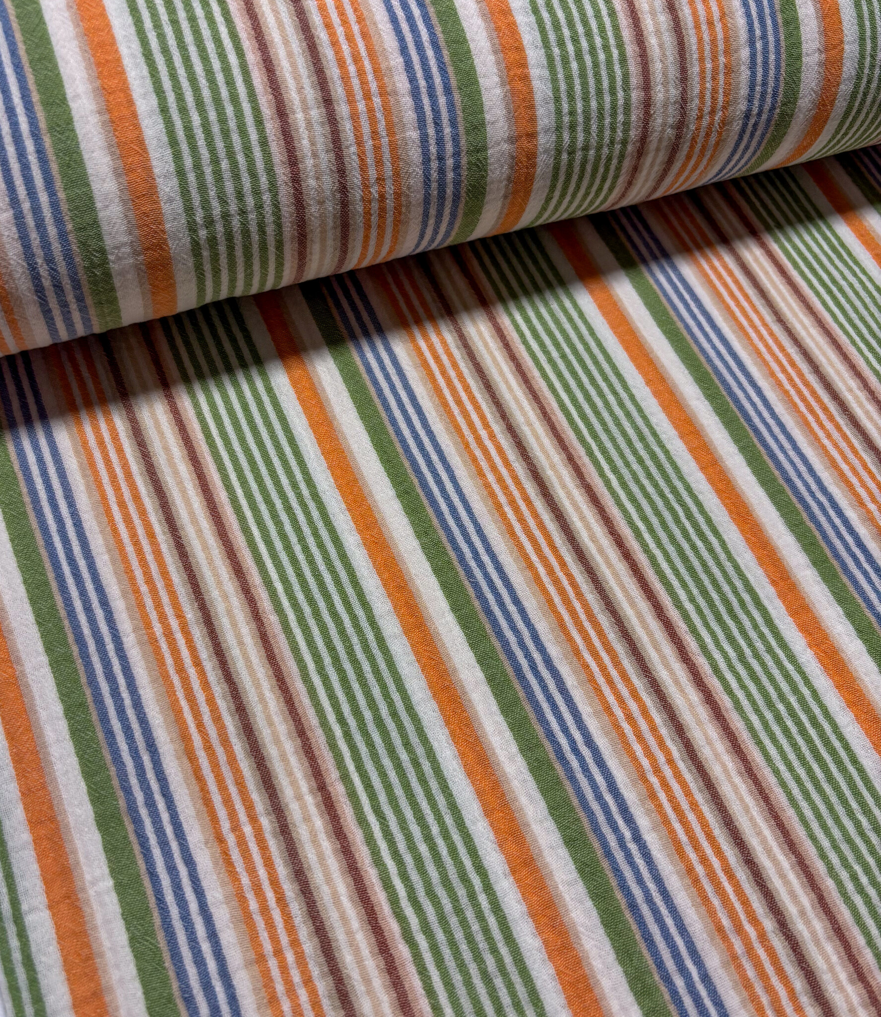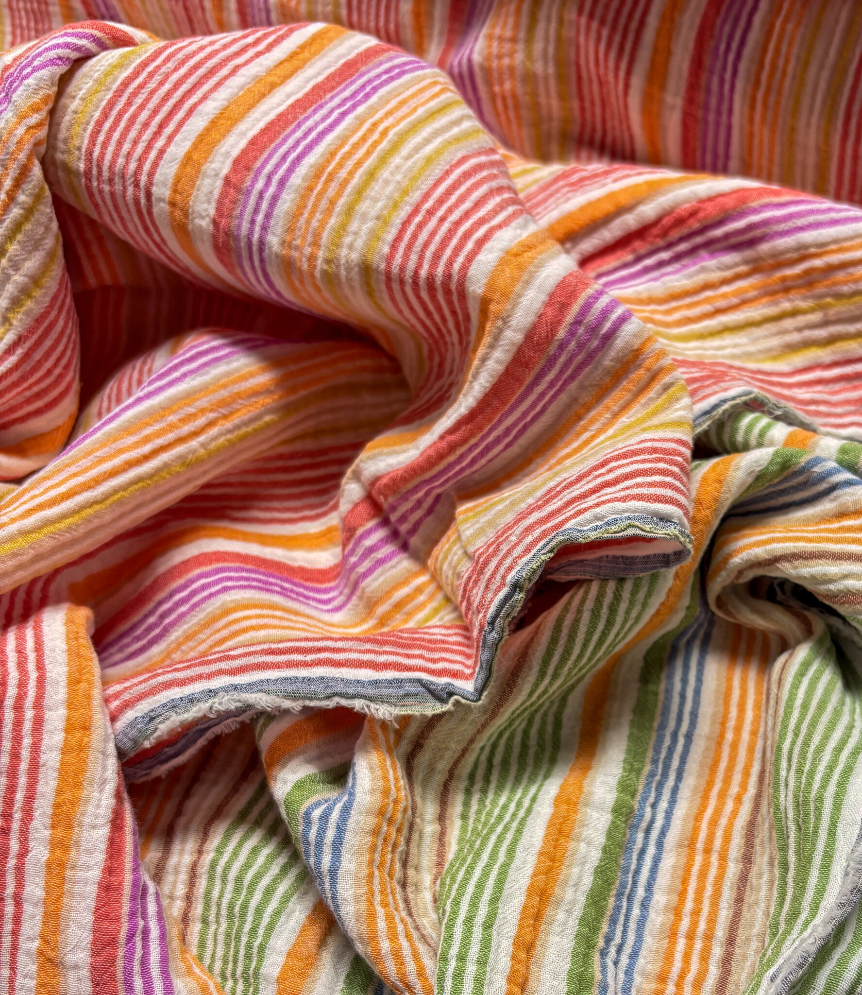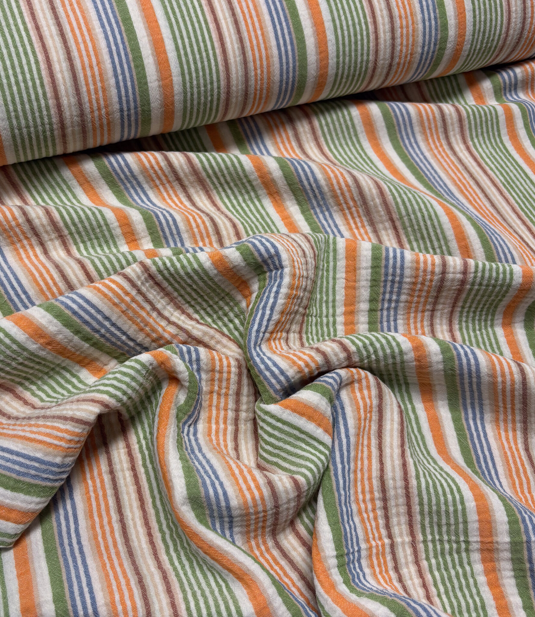Beautiful quality double gauze with stripes. Perfect for dresses, tops, T-shirts, and baby and children's items (nests, blankets, etc.). Wonderfully soft. OEKO-Tex certified.