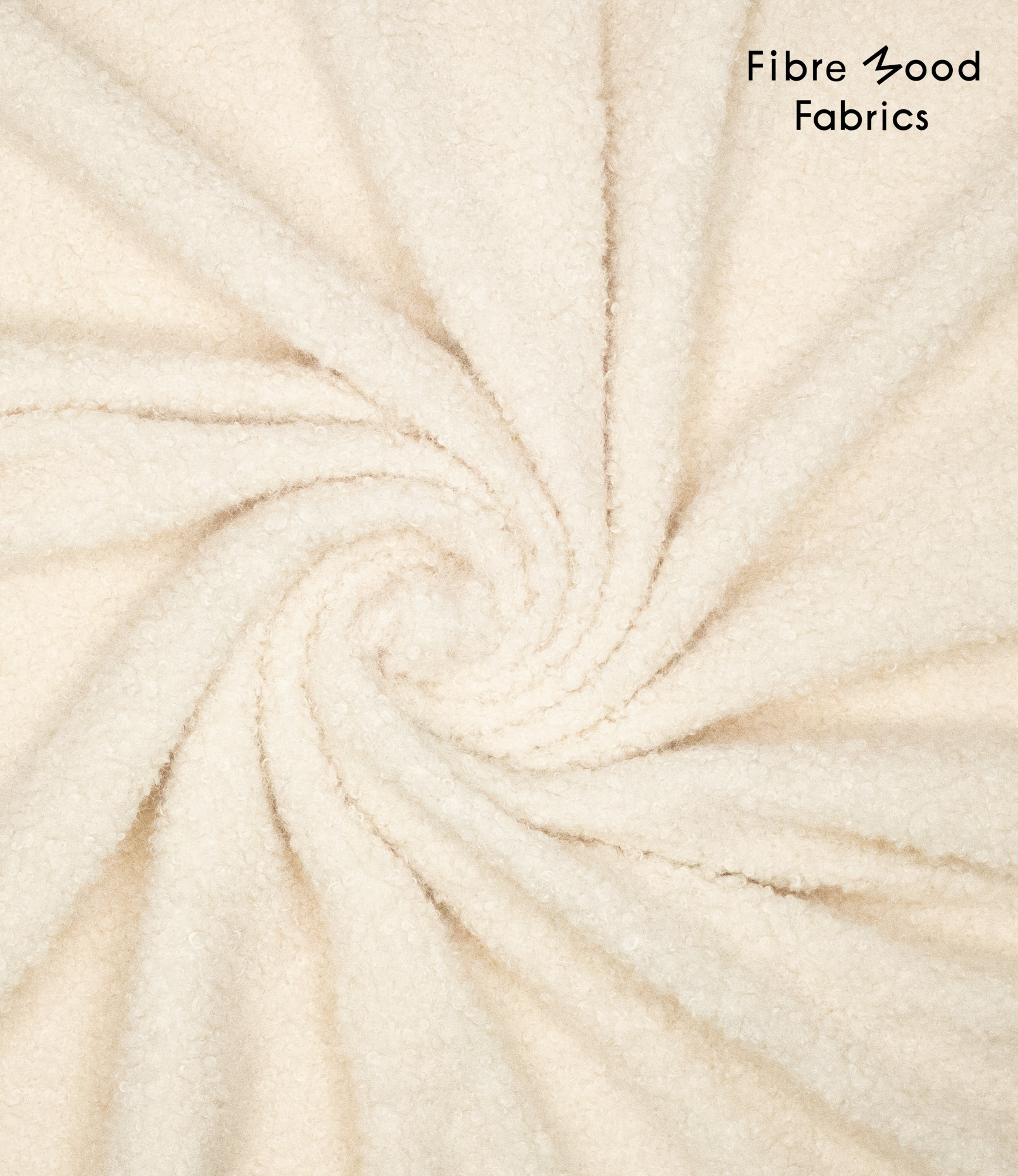 A fluffy bouclé fabric. Perfect for coats, vests, and more. This fabric is featured in Fibre Mood magazine issue 28.