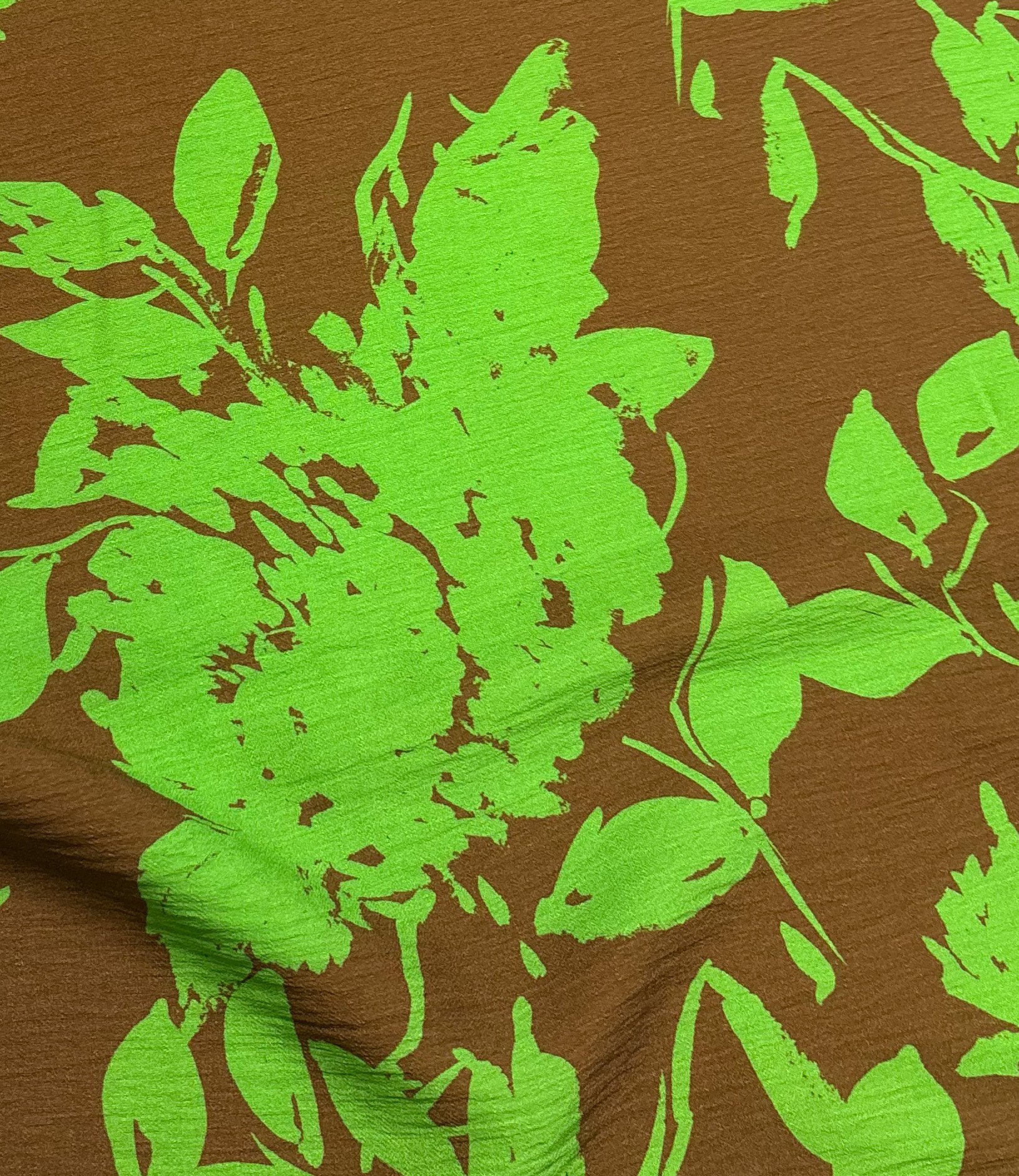 A beautiful viscose slub (lovely texture) with green floral silhouettes. A la Ville fabrics.