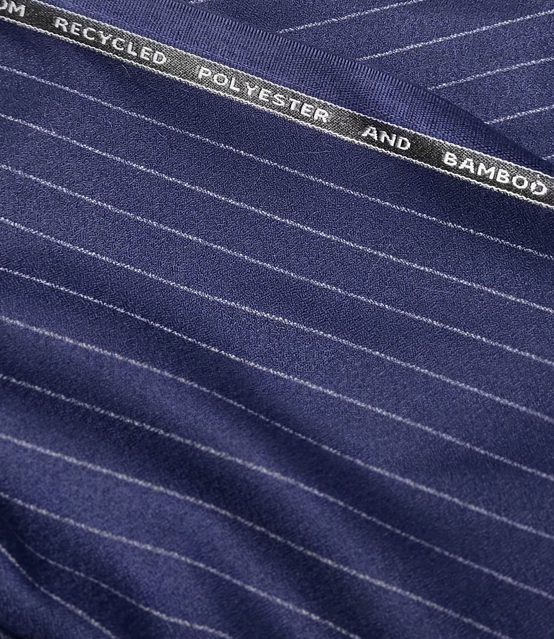 Indigo blue with gray pine stripe - woven bamboo blend - very soft fabric and no wrinkles