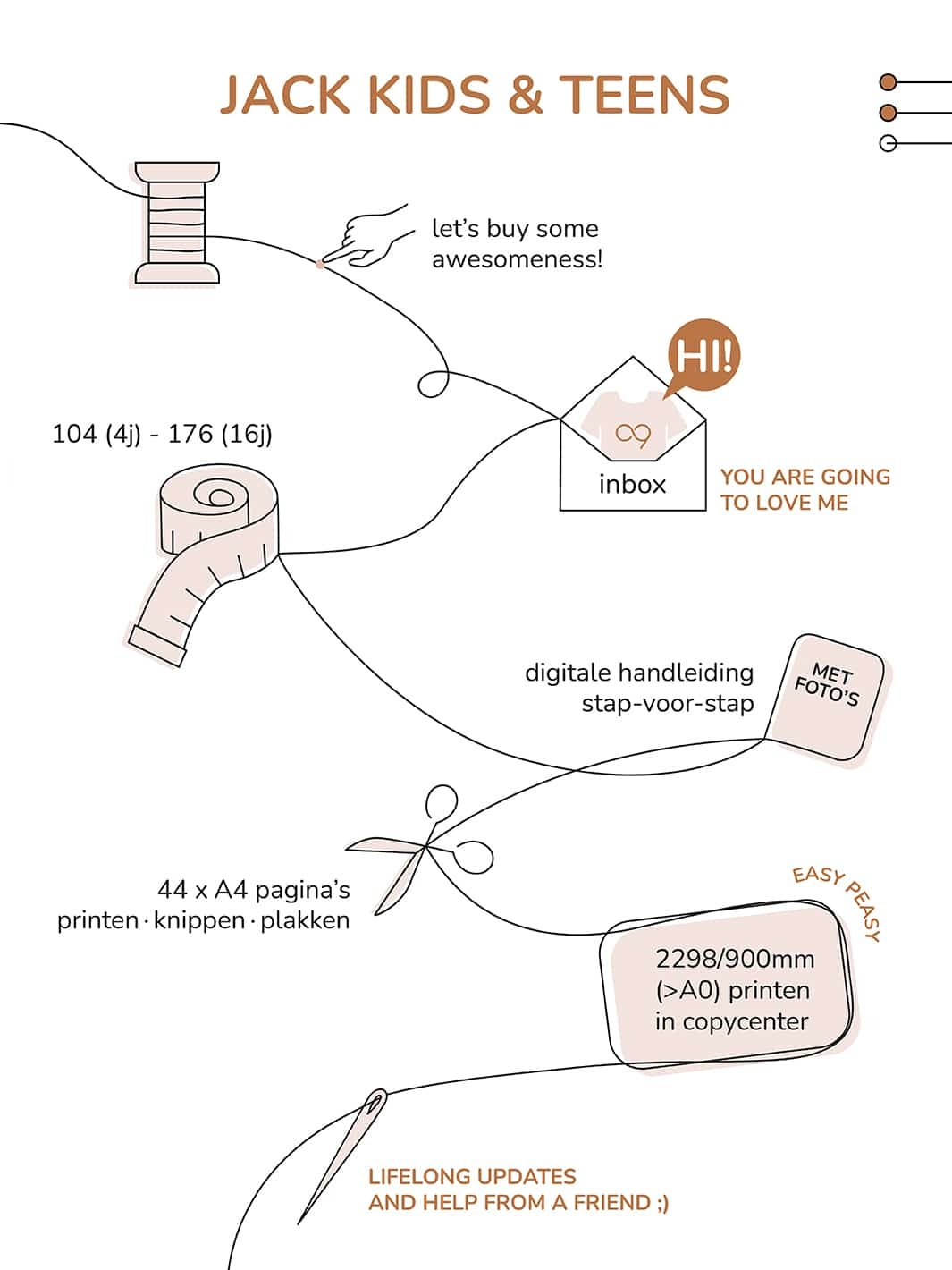 How does it work? Very simple, you order it this way or buy it in our store. You will receive the patterns and manual from us by email. Would you like to receive the pattern on A0 paper? That is also possible, with our A0 printer we will print it out for you immediately. Just click this while ordering.