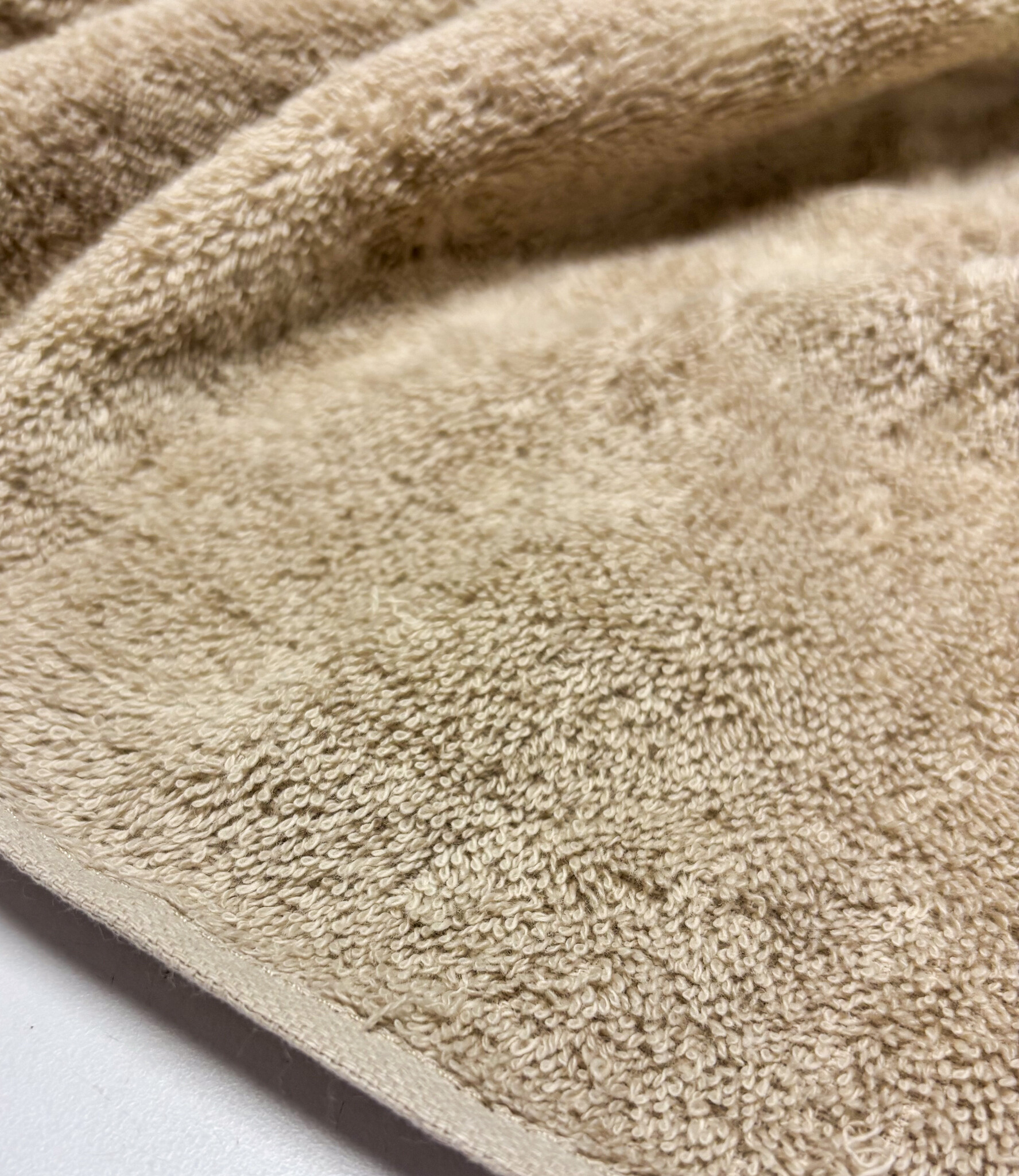 A terry cloth with a finished selvedge. Perfect for bath towels.