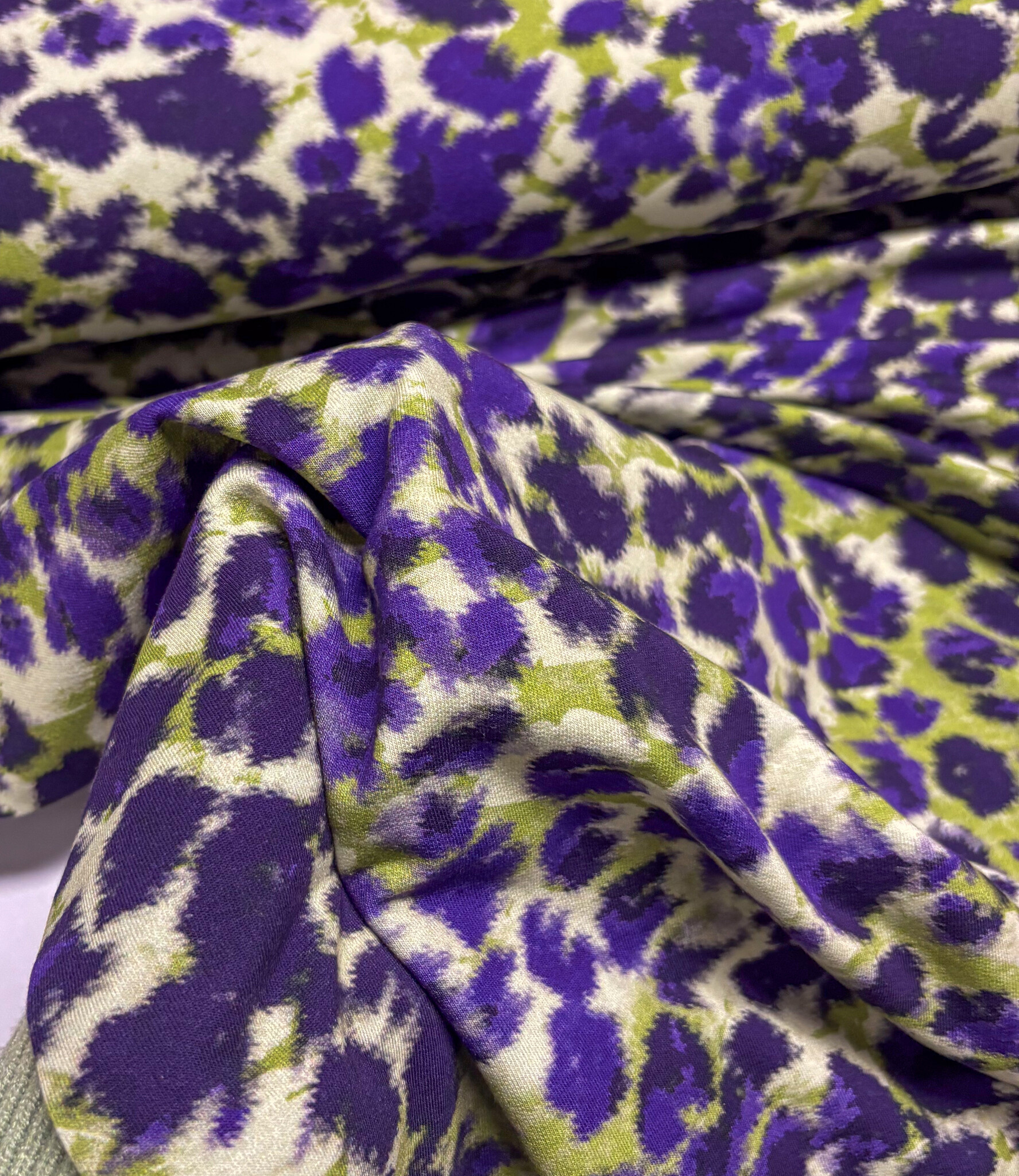 khaki/purple spotted abstract print - French terry - Madeline De Stoffenmadam