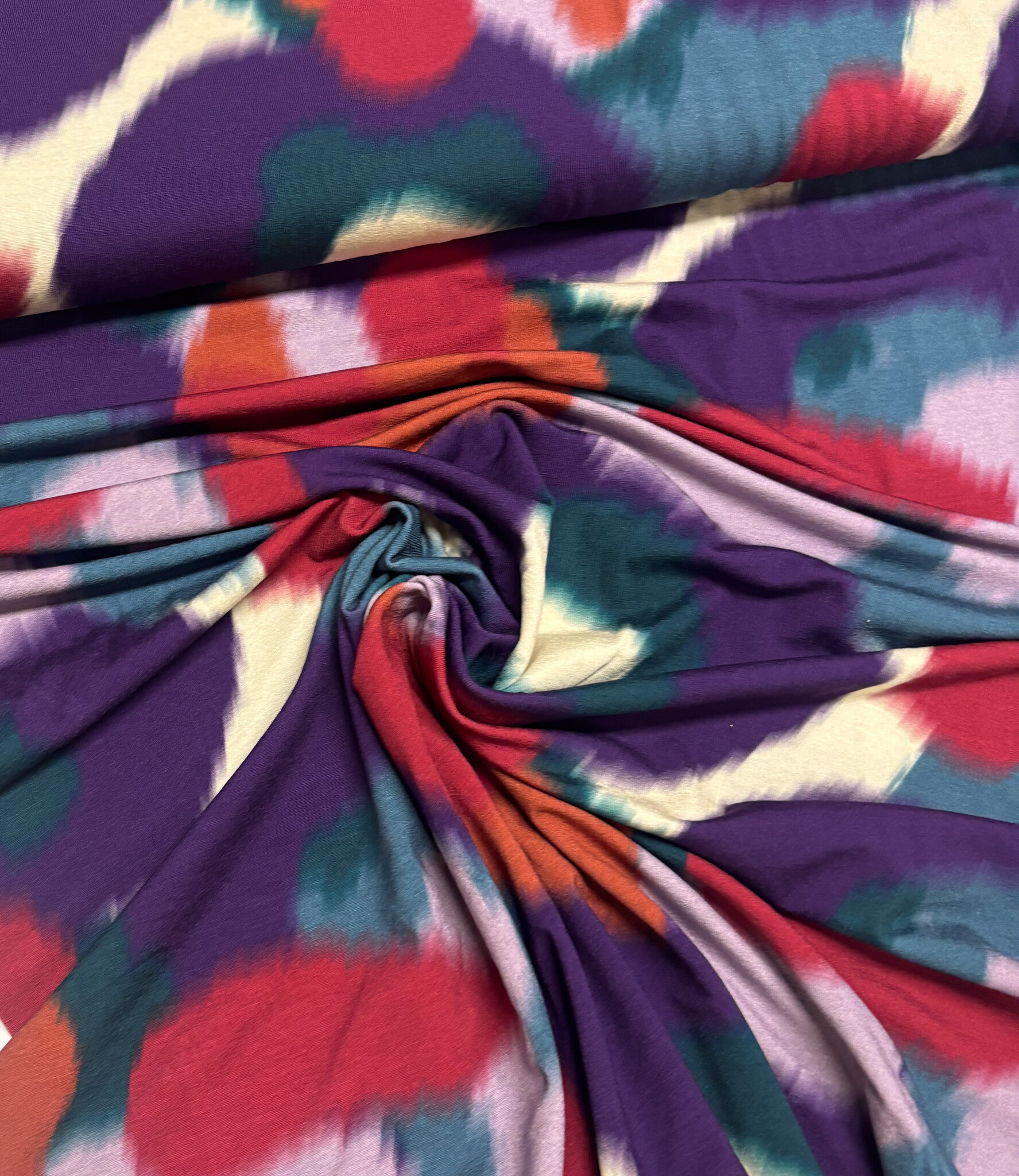 A beautiful viscose jersey with a colorful print. Swafing Stoffe.