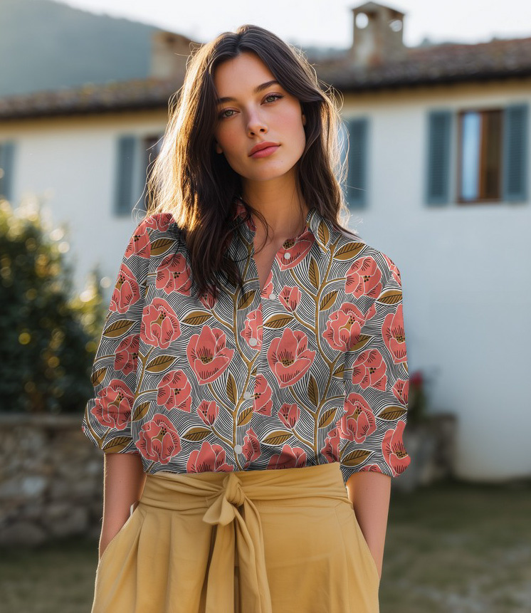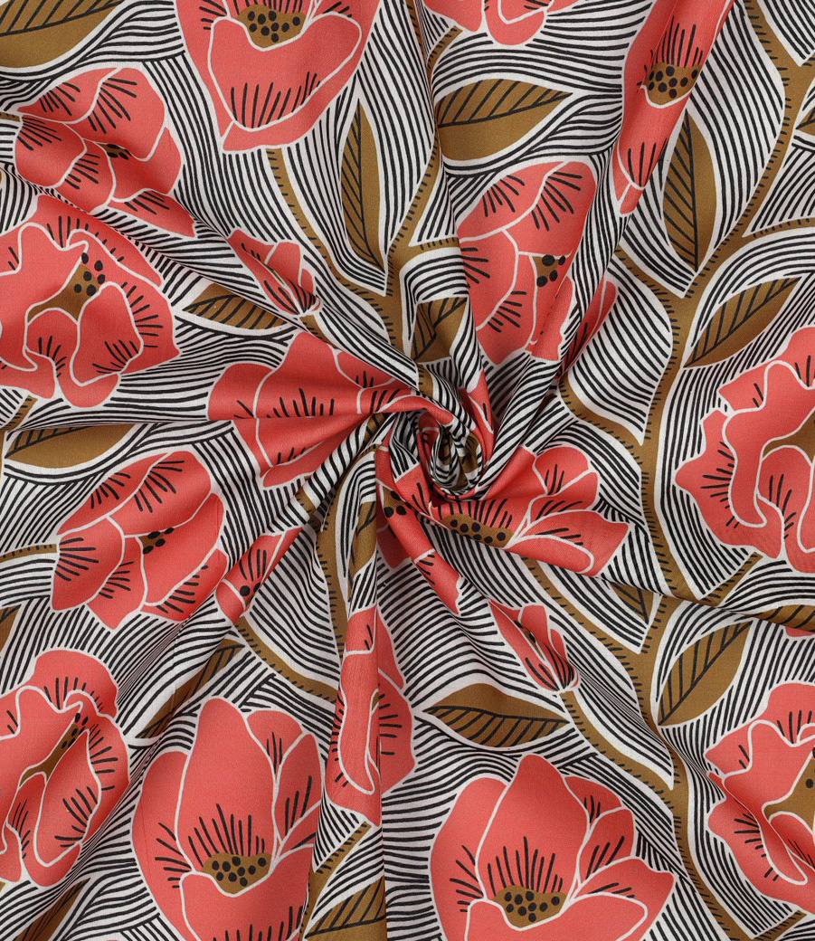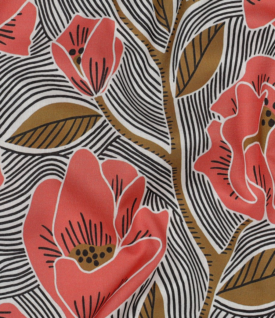 Beautiful floral voile cotton. Smooth and lightweight, ideal for blouses. It's not see-through for a blouse. For a skirt, consider wearing a petticoat. Also very beautiful for dresses. OEKO-tex