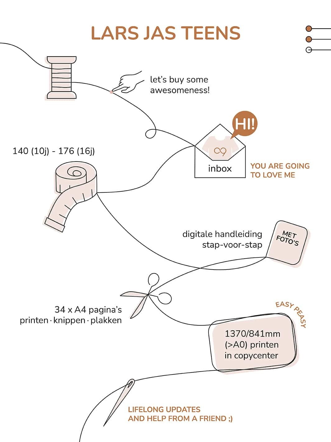 How does it work? Very simple, you order it this way or buy it in our store. You will receive the patterns and manual from us by email. Would you like to receive the pattern on A0 paper? That is also possible, with our A0 printer we print this immediately for you. Just click this when ordering.