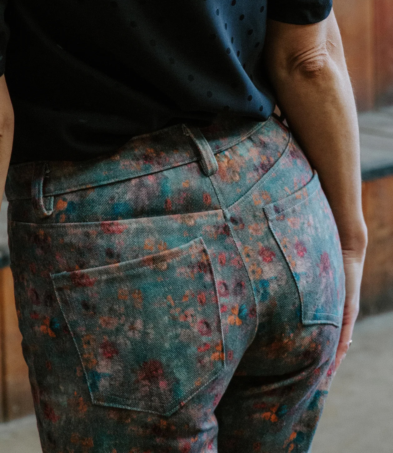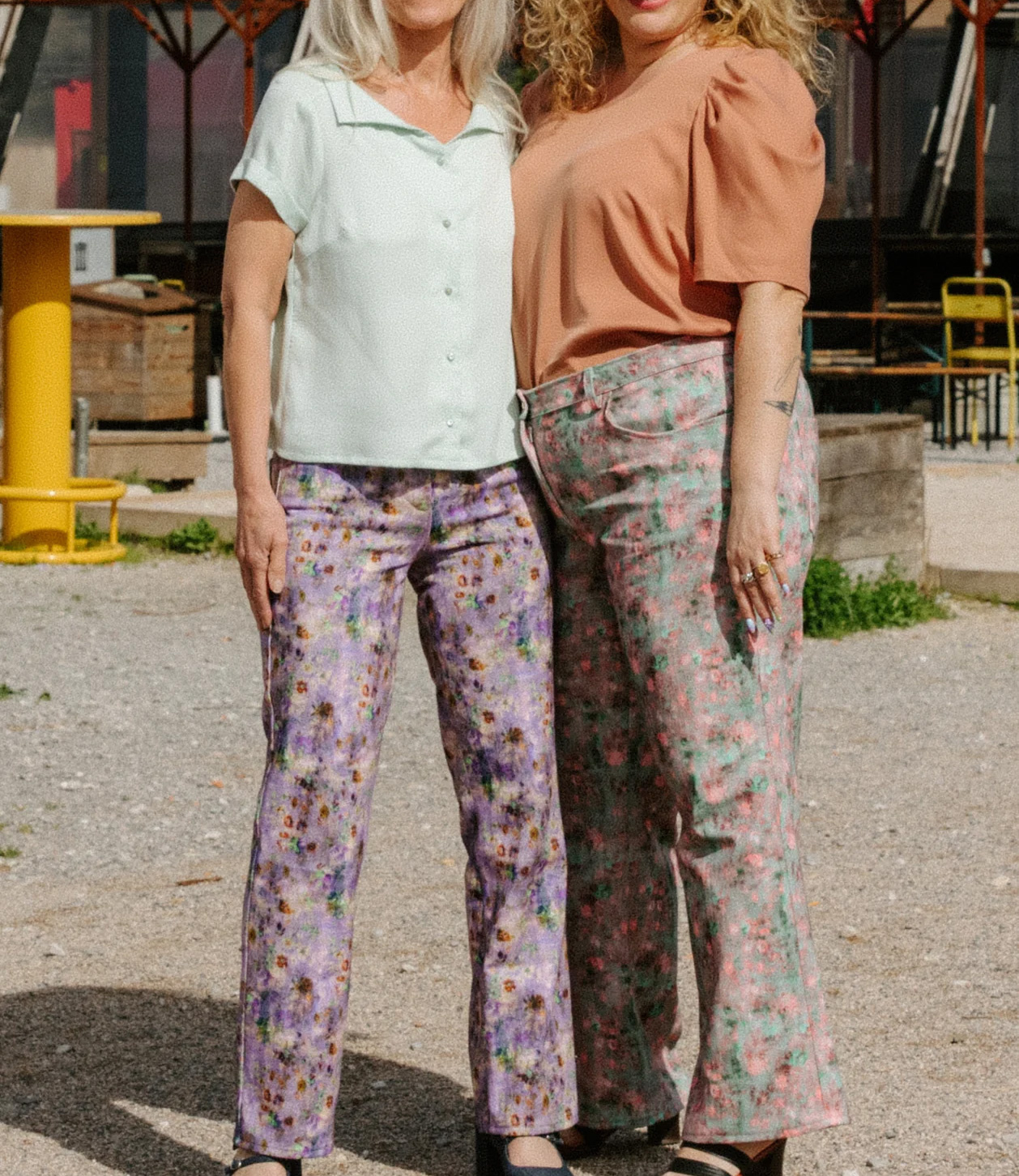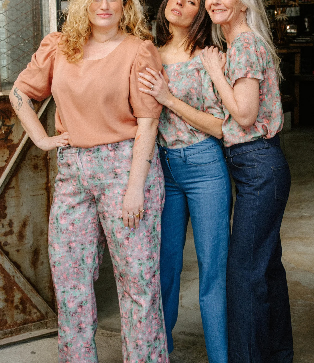 The Worn pattern is available in sizes 34 to 52. It is a pair of straight-leg jeans with a slightly dropped waistband. If you fall between two sizes, measure your hip circumference.