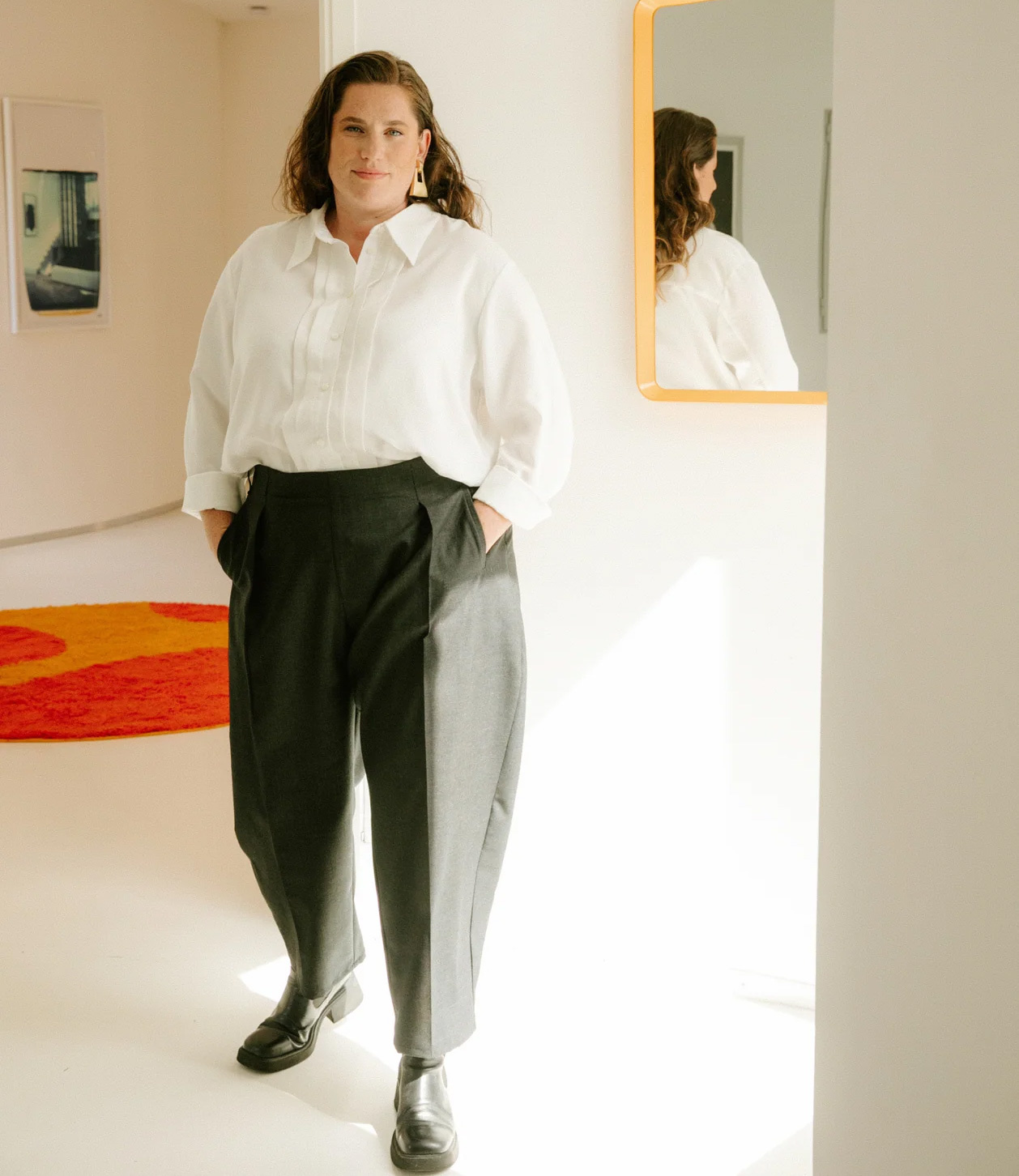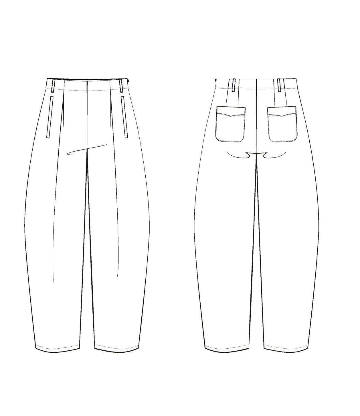 The ANDREA trousers by Maison Fauve are a barrel-leg style with rounded legs that taper at the ankle. Modern and elegant, with a perfect balance between rugged and refined.