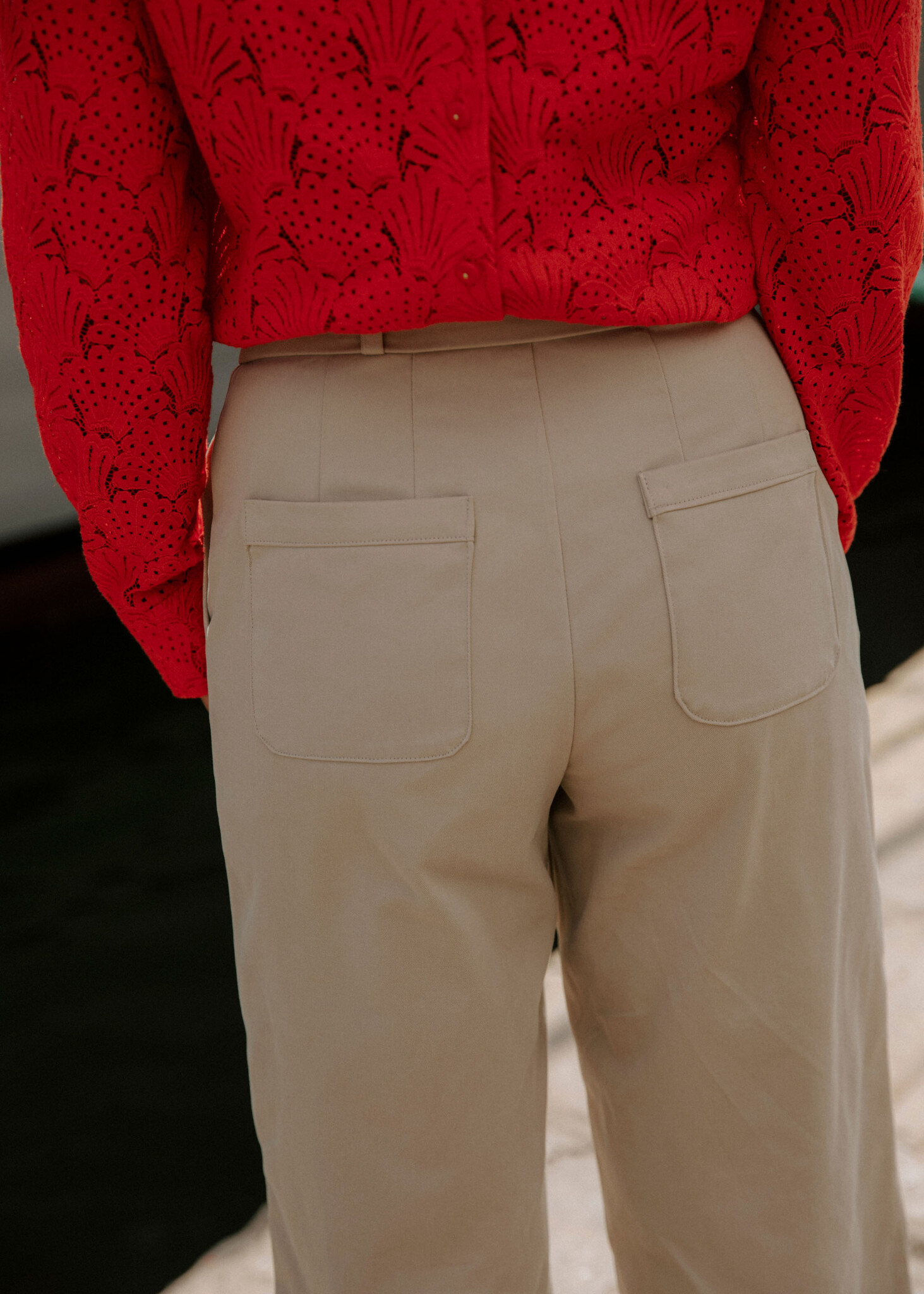 The Italian pockets are finished with a pocket entry strip for a very neat finish. The back of the trousers fits your figure well thanks to the double waist seams and flatters the silhouette with the large patch pockets.