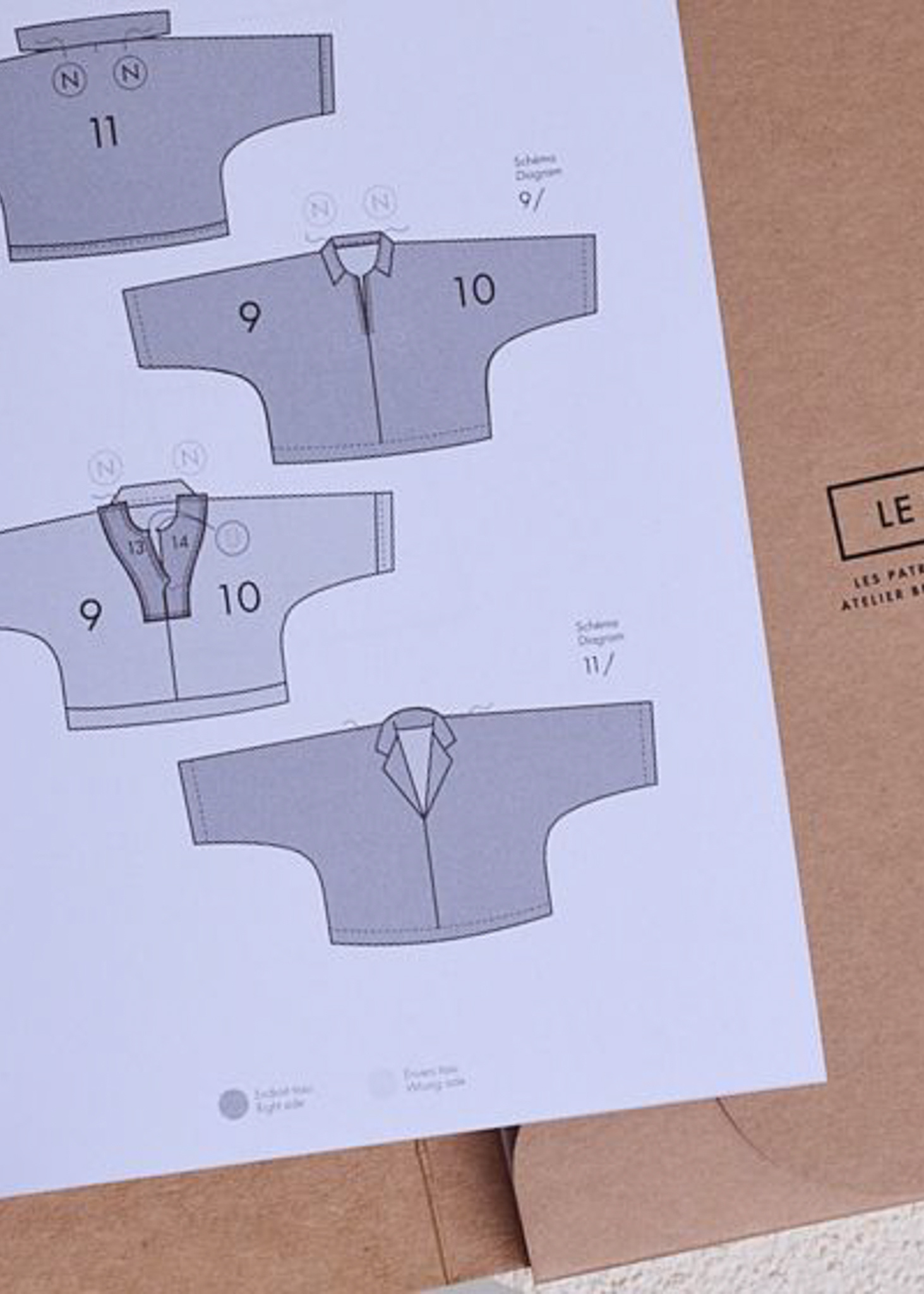 For my top I have kimono sleeves with a notch in the collar and a seam down the center front.
