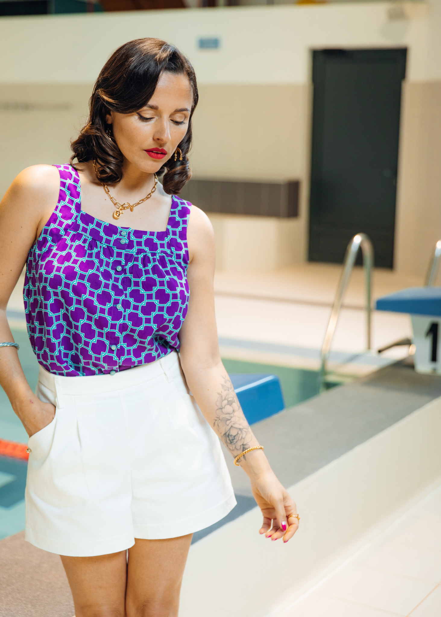 The GRAND BAIN shorts are shorts with a perfect cut and beautiful details. These shorts are suitable for all occasions: incredibly elegant in tweed, casual shorts in cotton gabardine, light as a breeze in printed poplin. This beautiful pattern forms the perfect basis for a whole summer's worth of shorts!