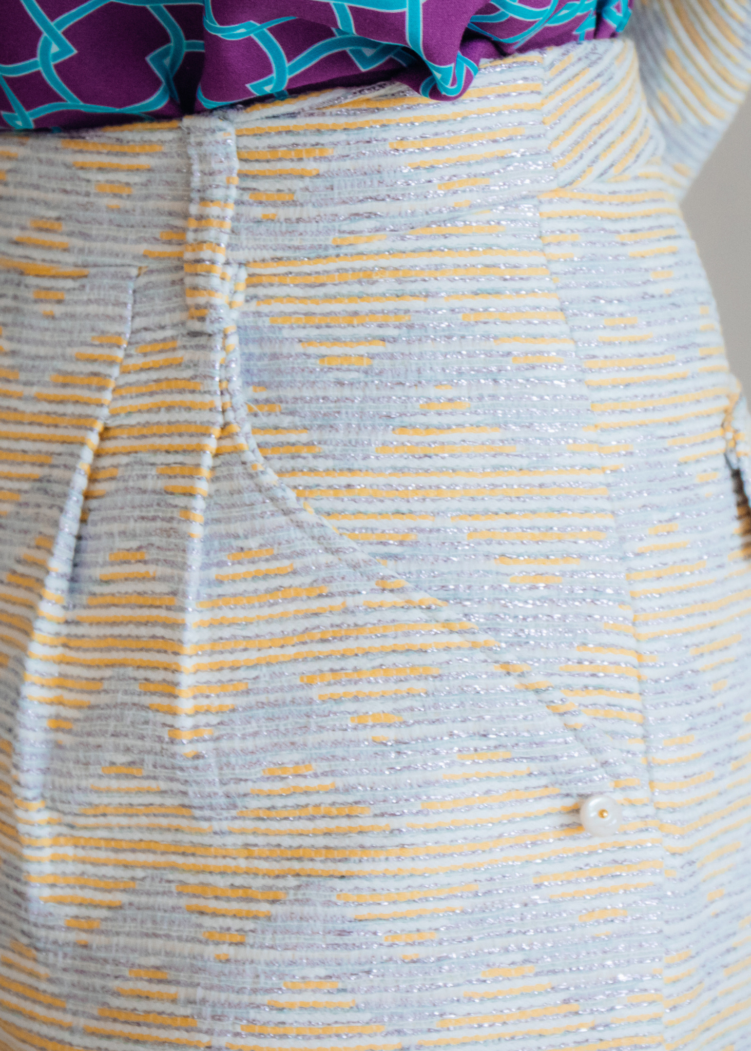 Techniques: invisible zipper, waistband attachment, side pockets, stitching in pleats,...