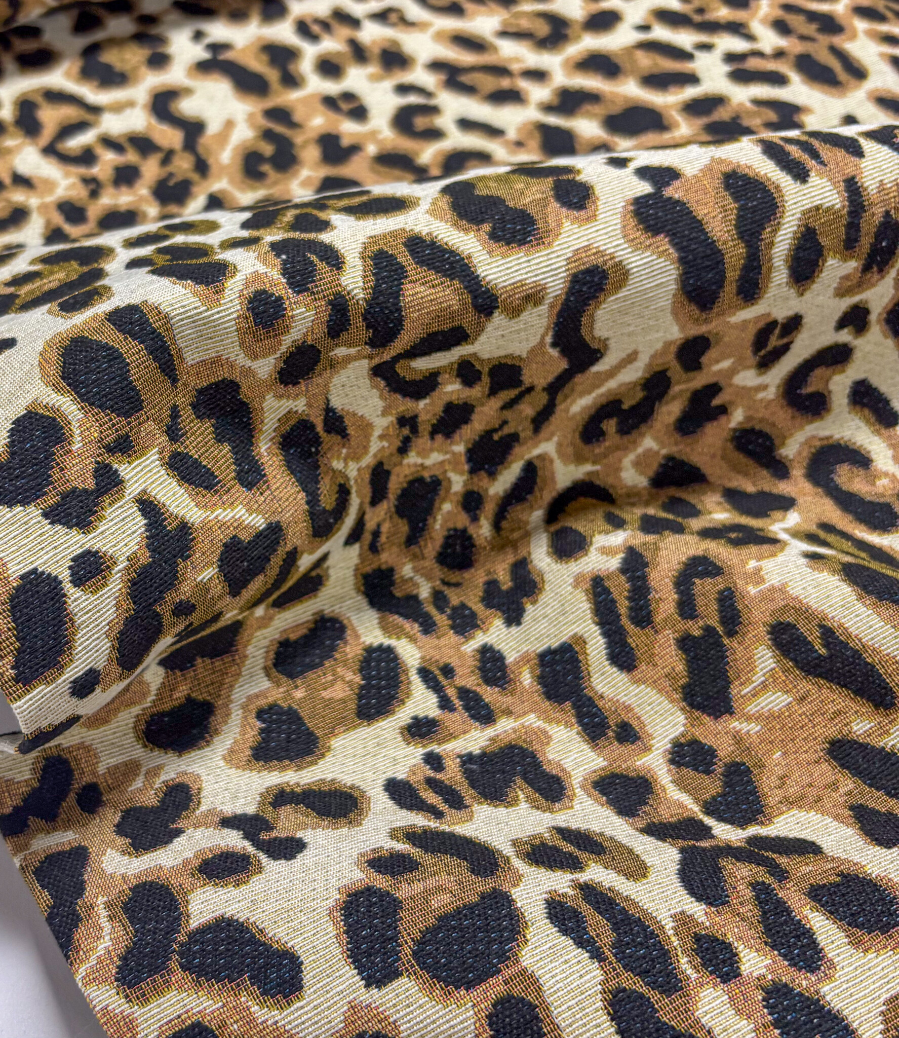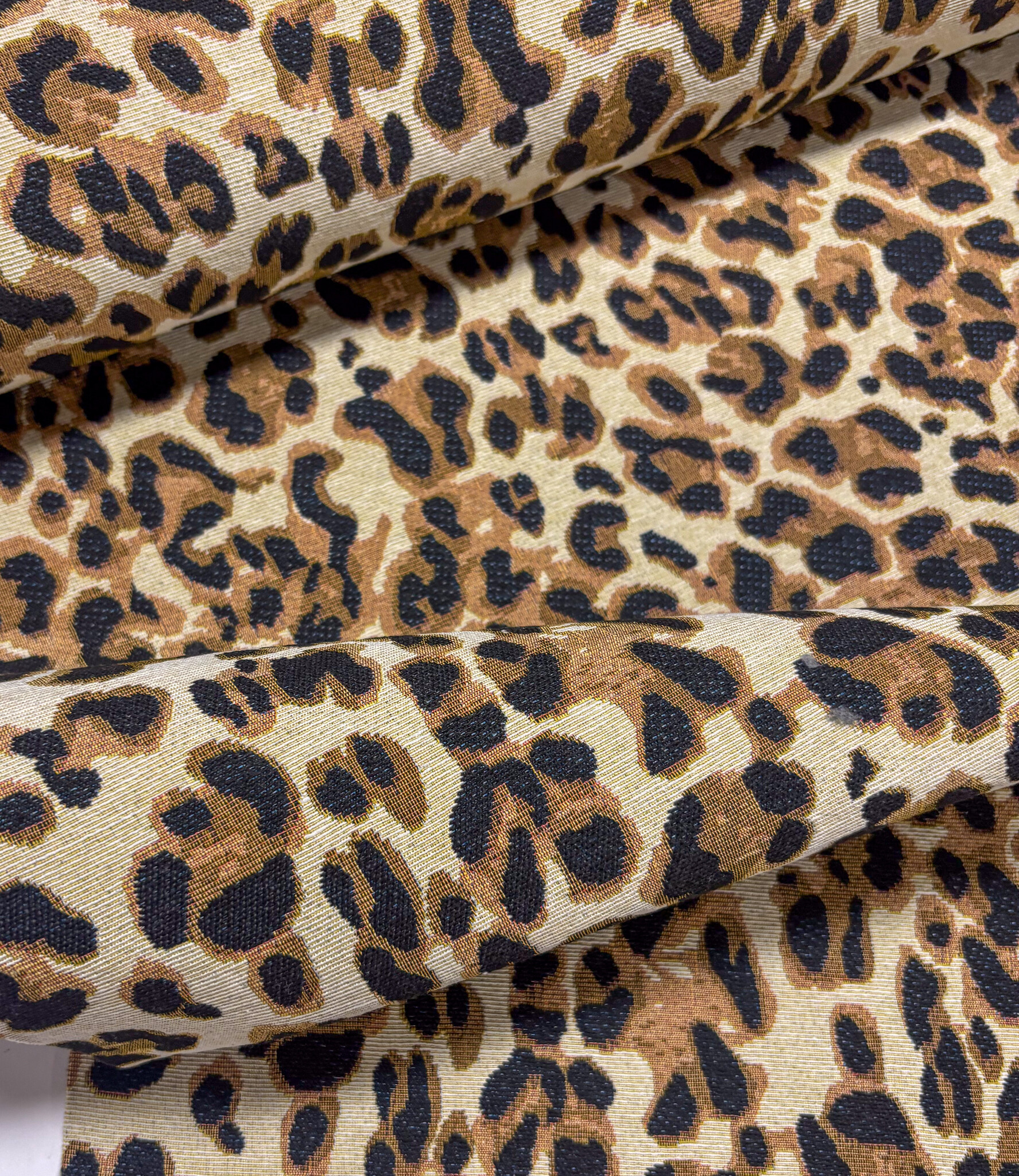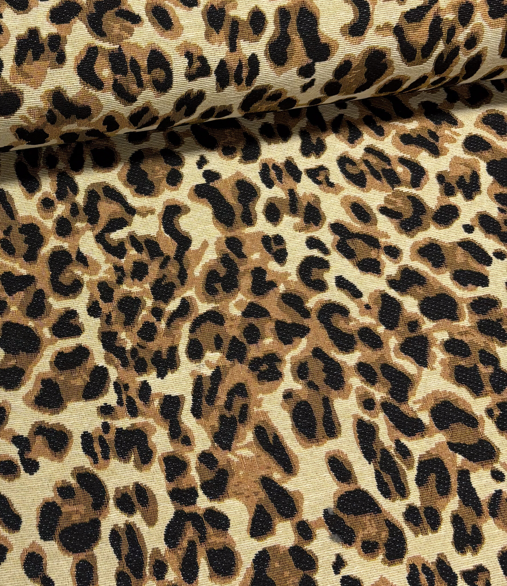 A sturdy leopard-print tapestry jacquard. Perfect for bags, skirts, or cardigans.