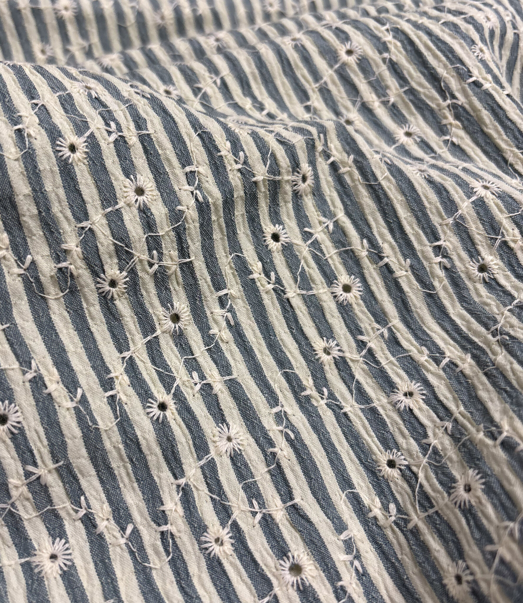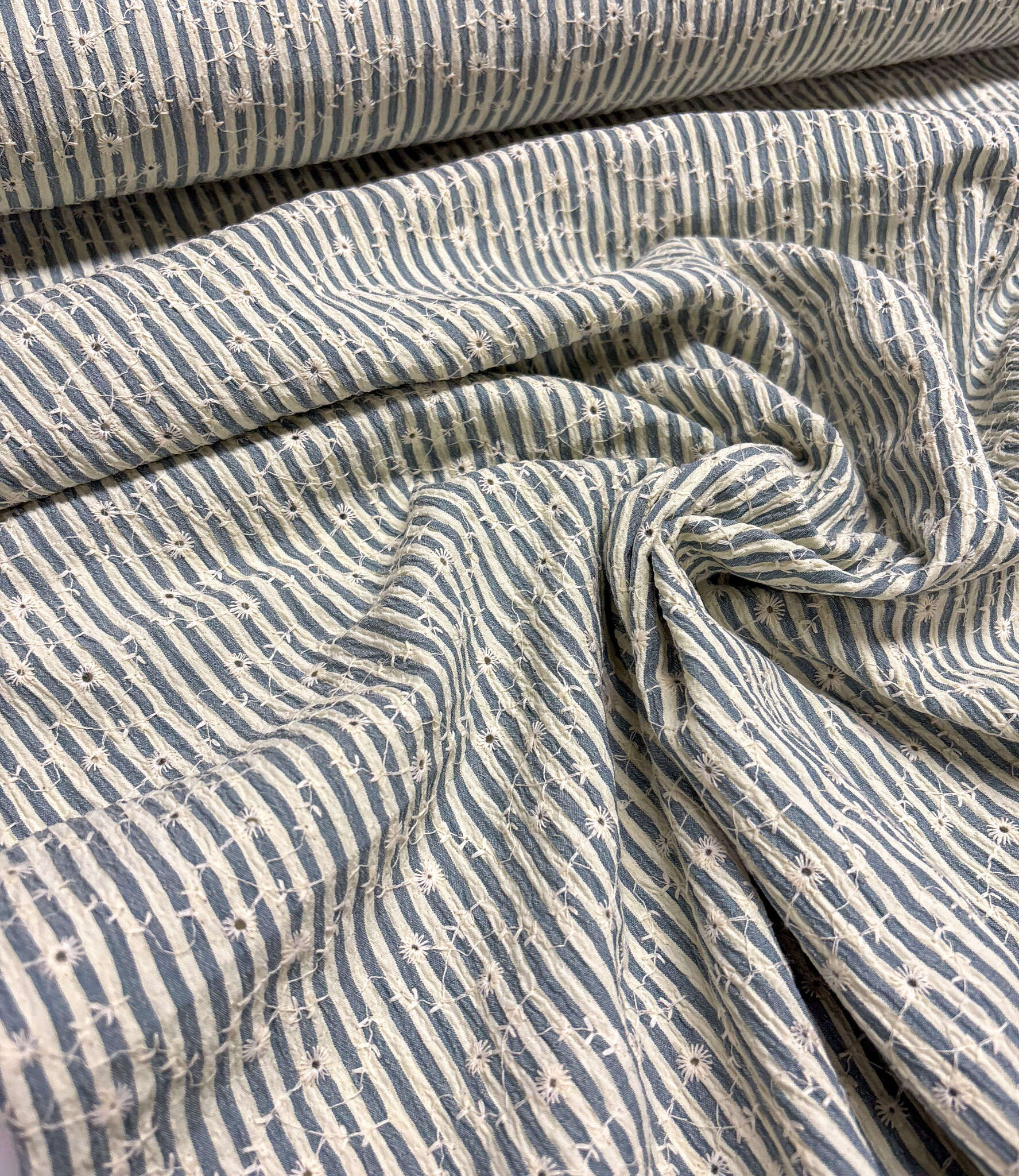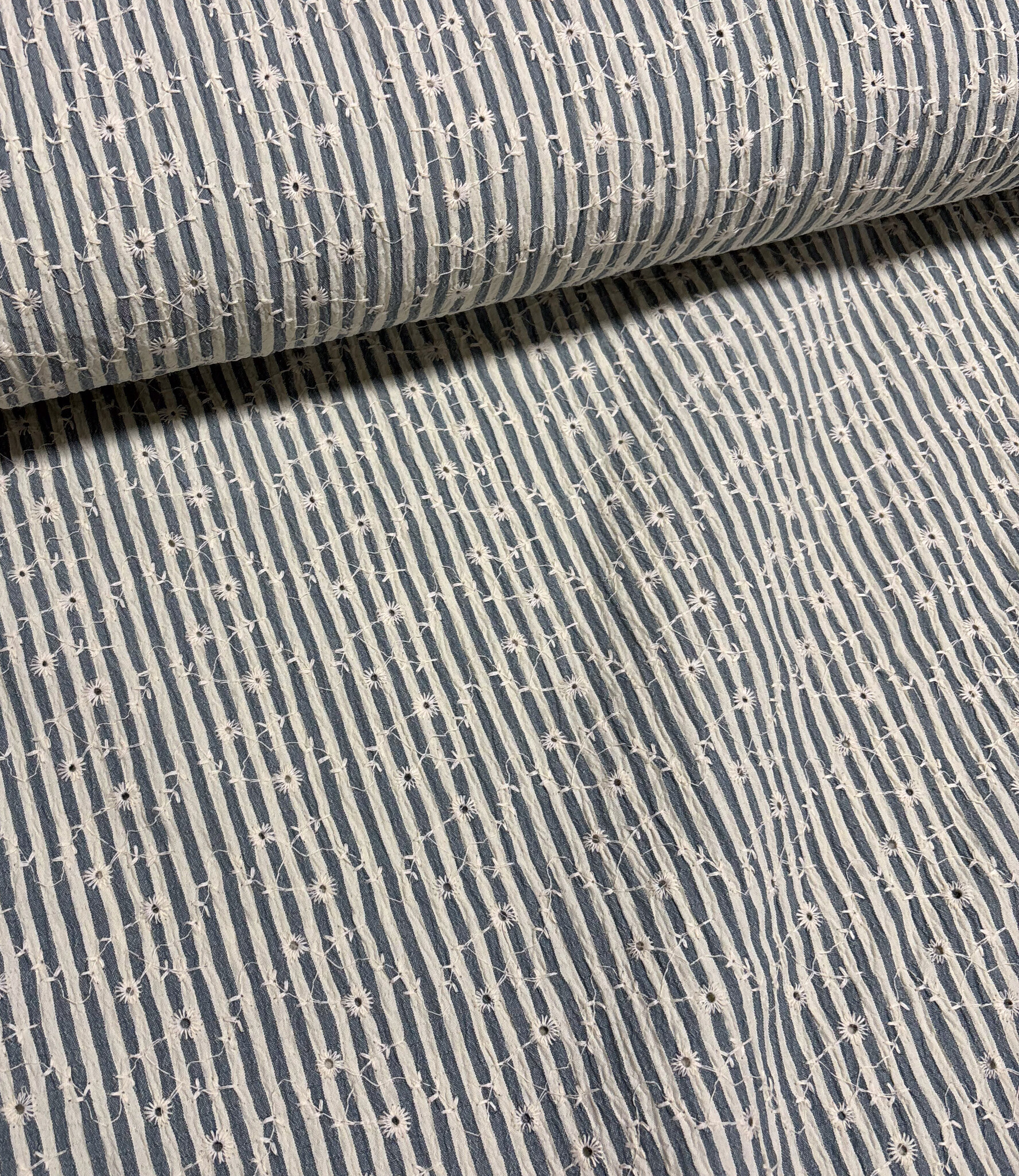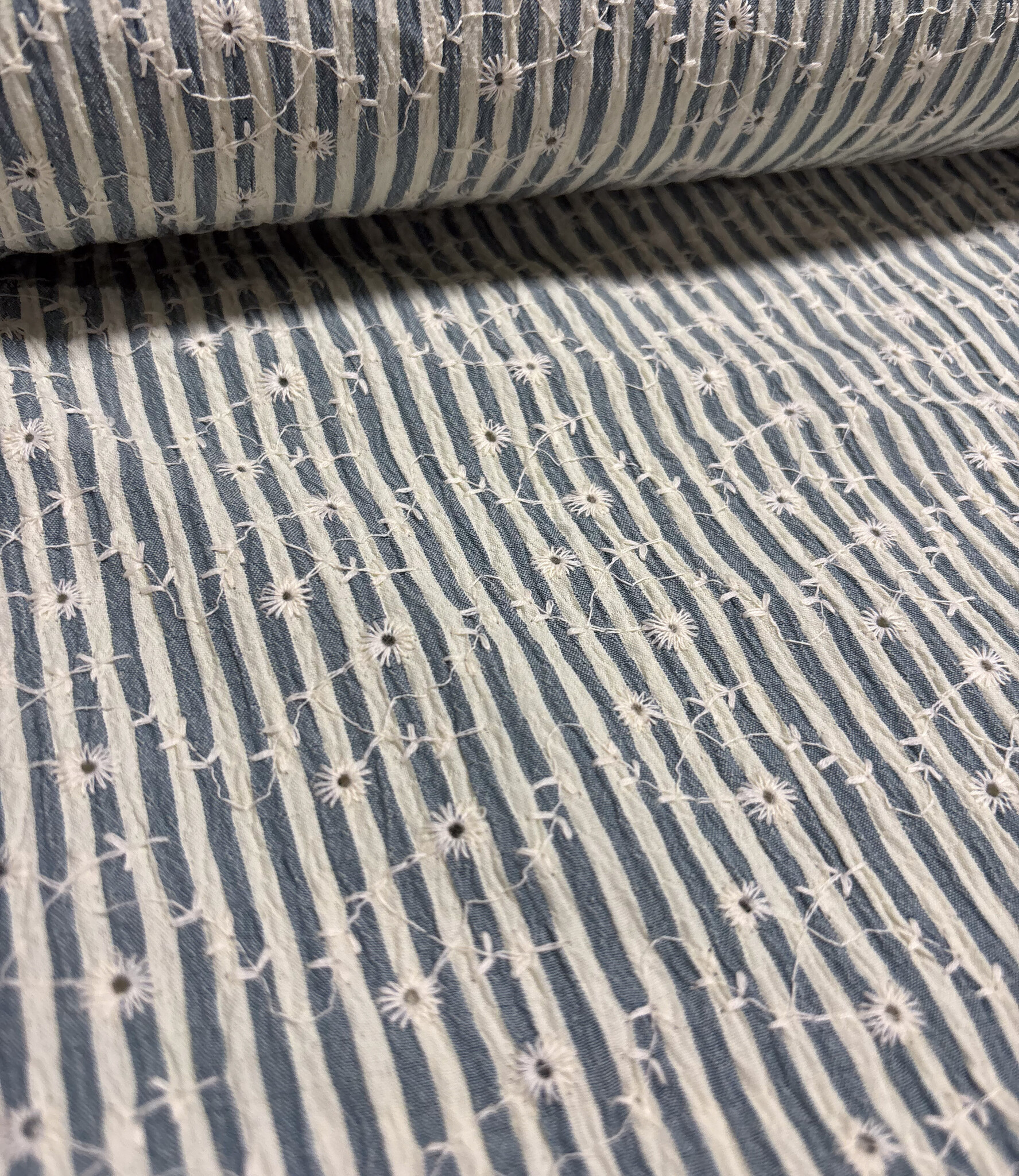 light blue stripes and floral embroidery - viscose mix - Madeline De Stoffenmadam