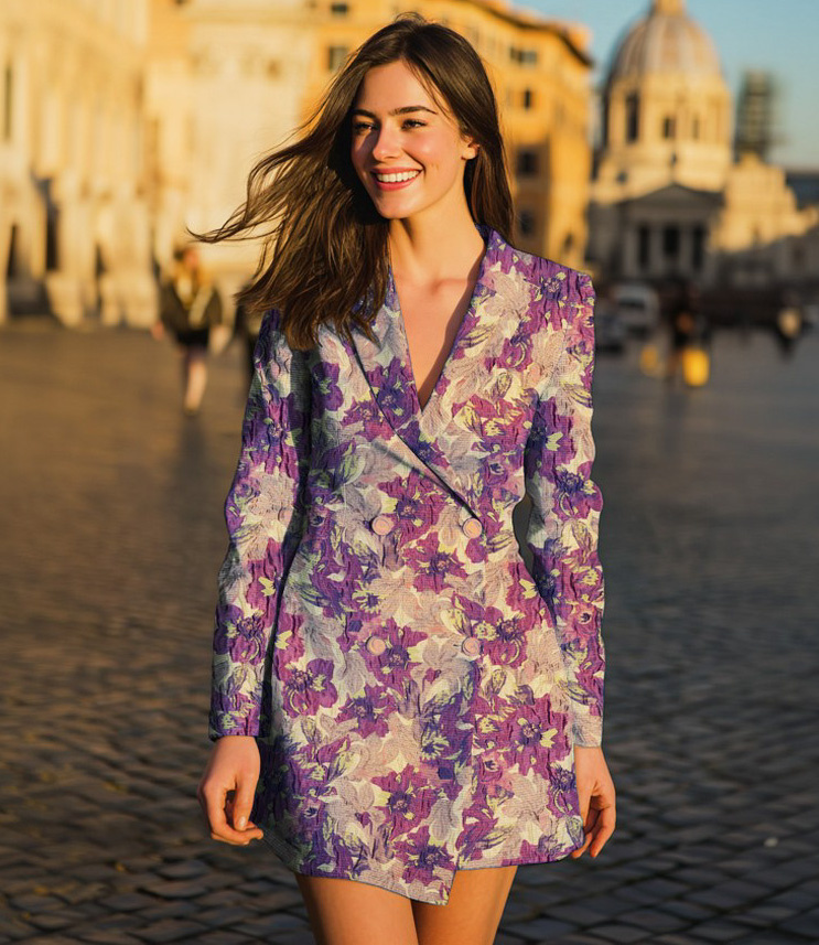 A beautiful woven jacquard with floral details. This flowing jacquard is ideal for blouses, dresses, skirts, and blazers. It's also perfect for loose-fitting trousers. Or as a sleeve detail on a sweater or blazer.