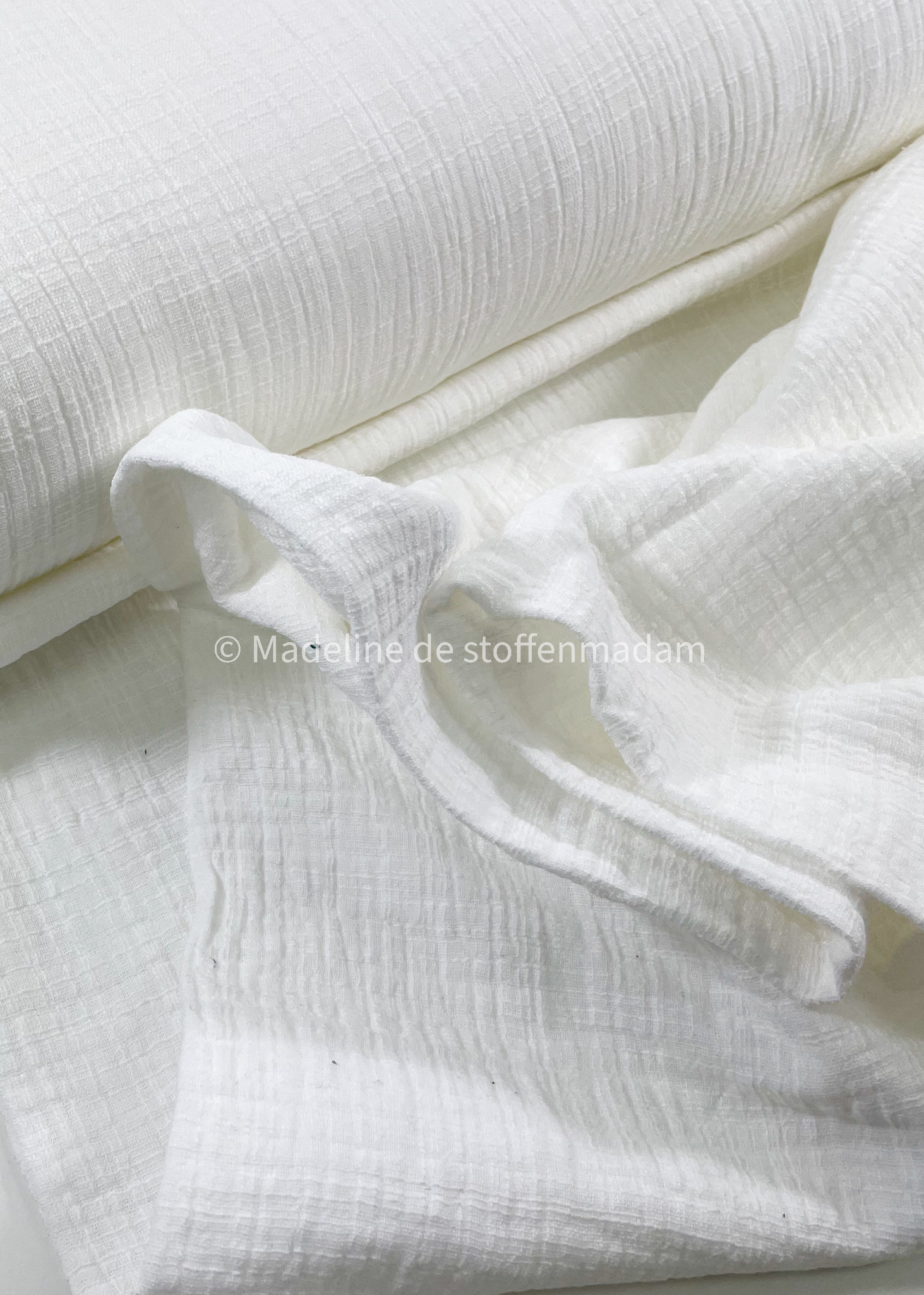 A super soft cotton linen blend. This cotton linen blend is a double gauze. A double gauze fabric has two thin layers of cotton woven together.