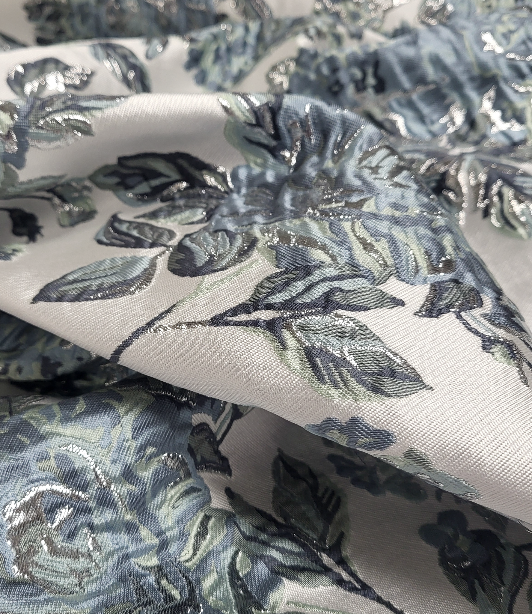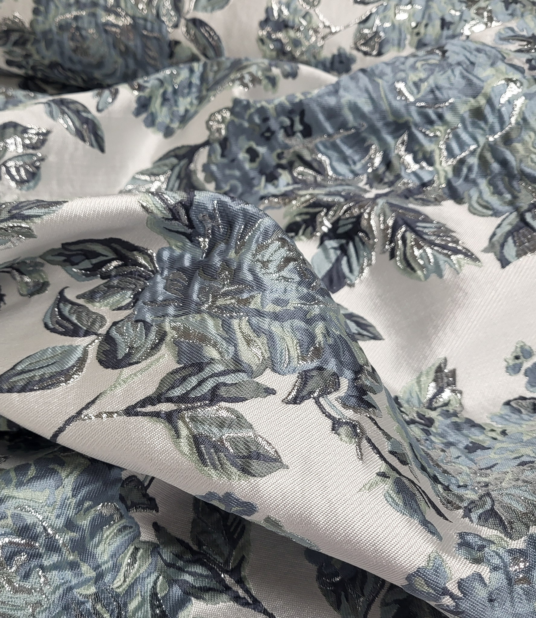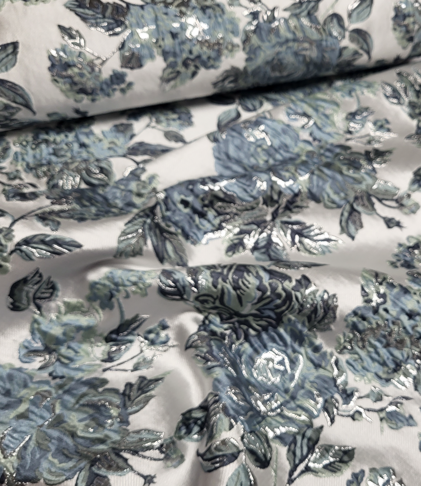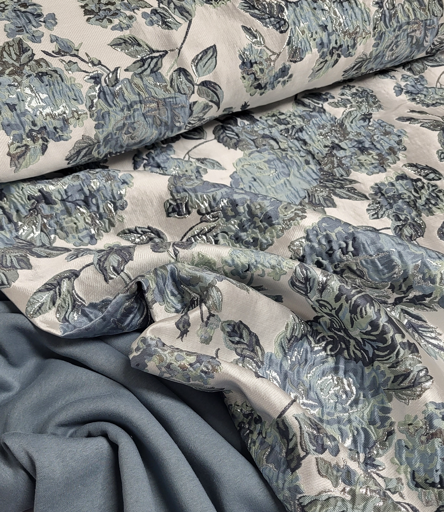 A beautiful woven jacquard with flowers. This is a supple jacquard. Ideal for blouses, dresses, skirts, and blazers. But certainly also suitable for loose trousers. Or as a detail sleeve on a sweater or blazer.
