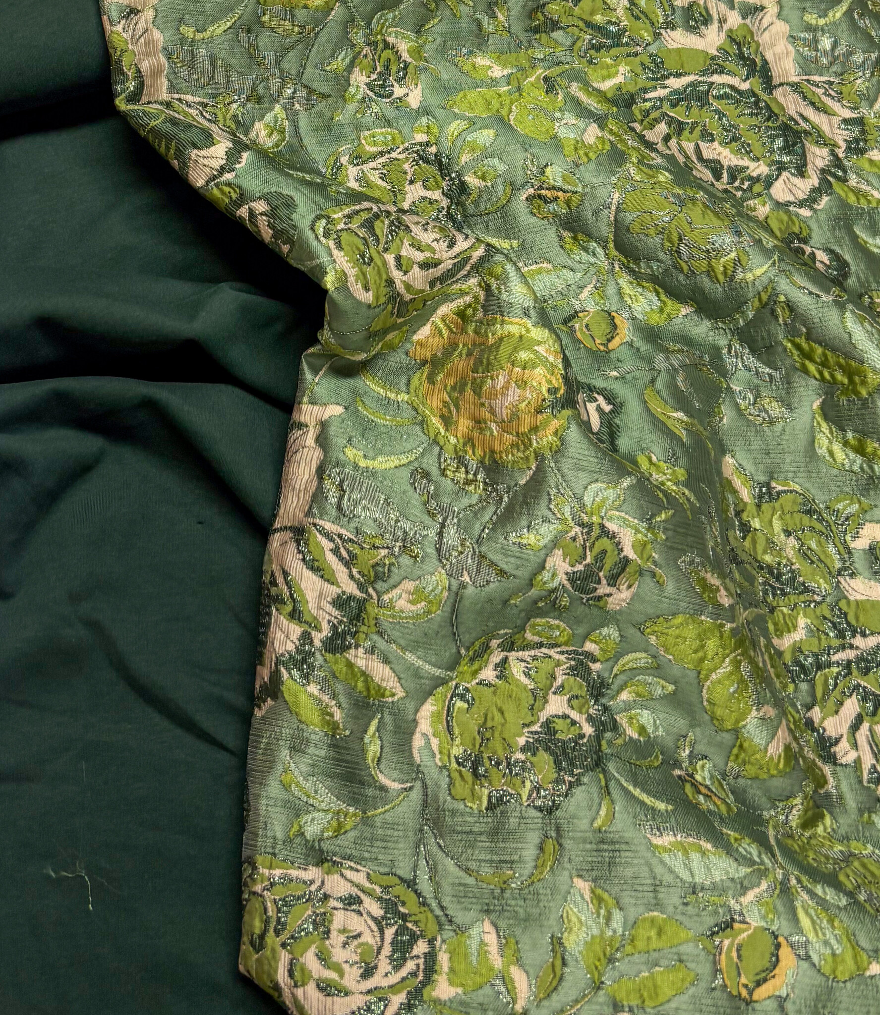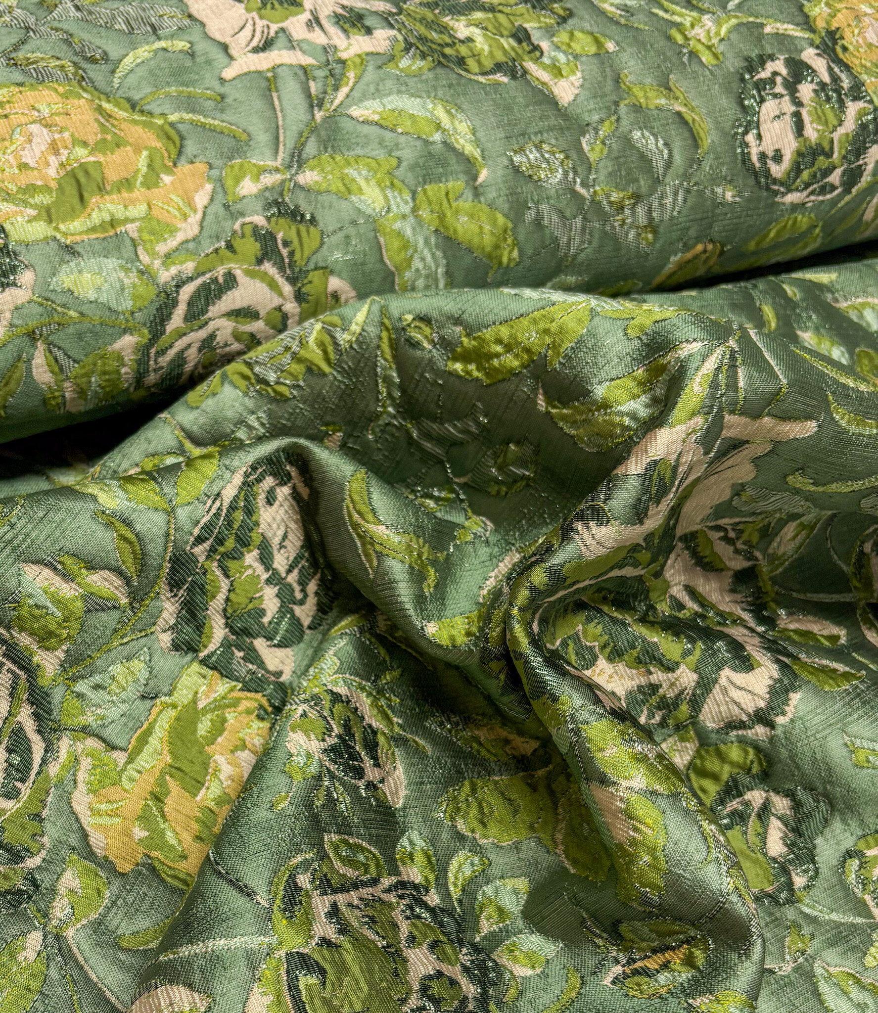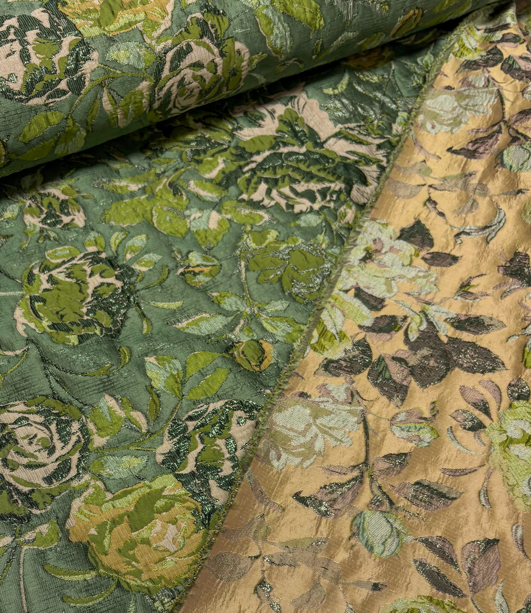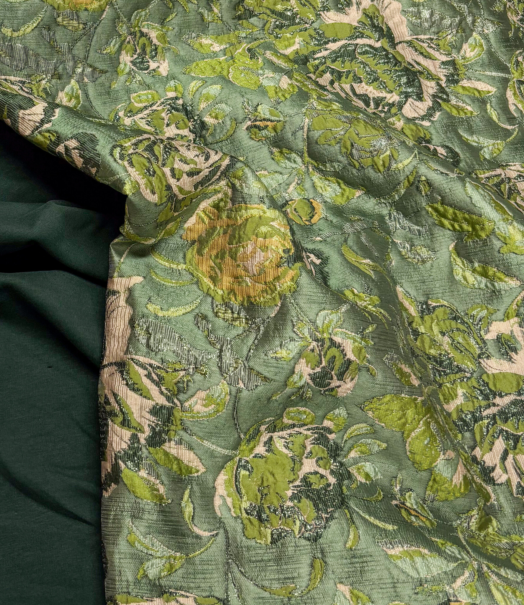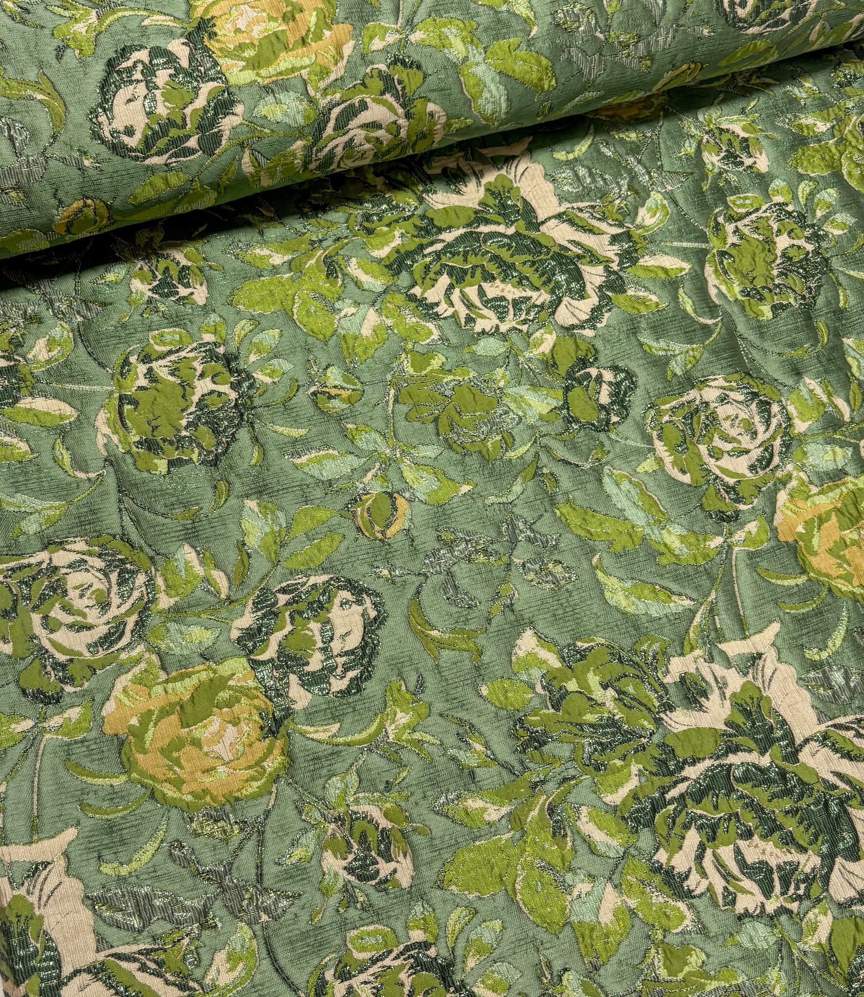 A beautiful woven jacquard with floral details. This flowing jacquard is ideal for blouses, dresses, skirts, and blazers. It's also perfect for loose-fitting trousers. Or as a sleeve detail on a sweater or blazer.