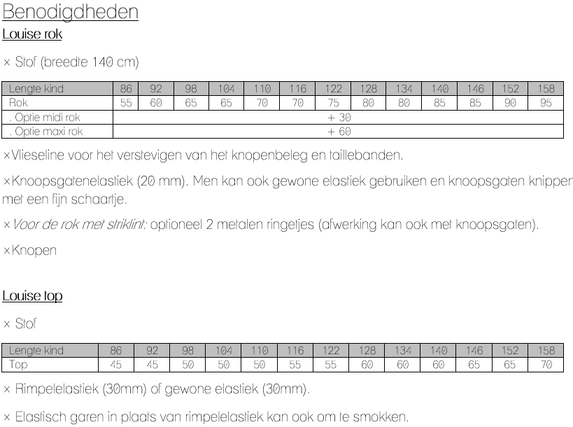Sewing pattern to make a top and skirt. Size 86-158.