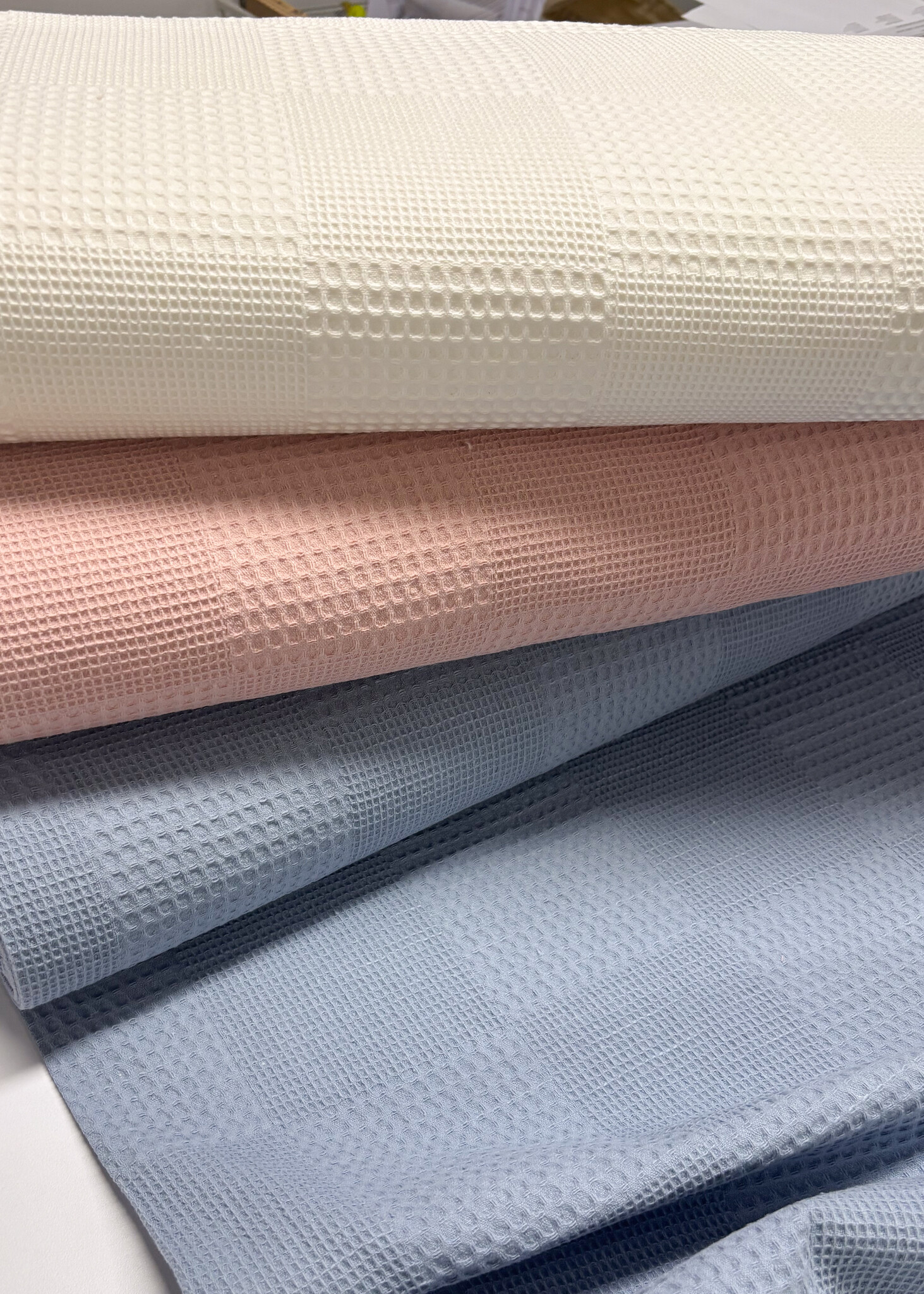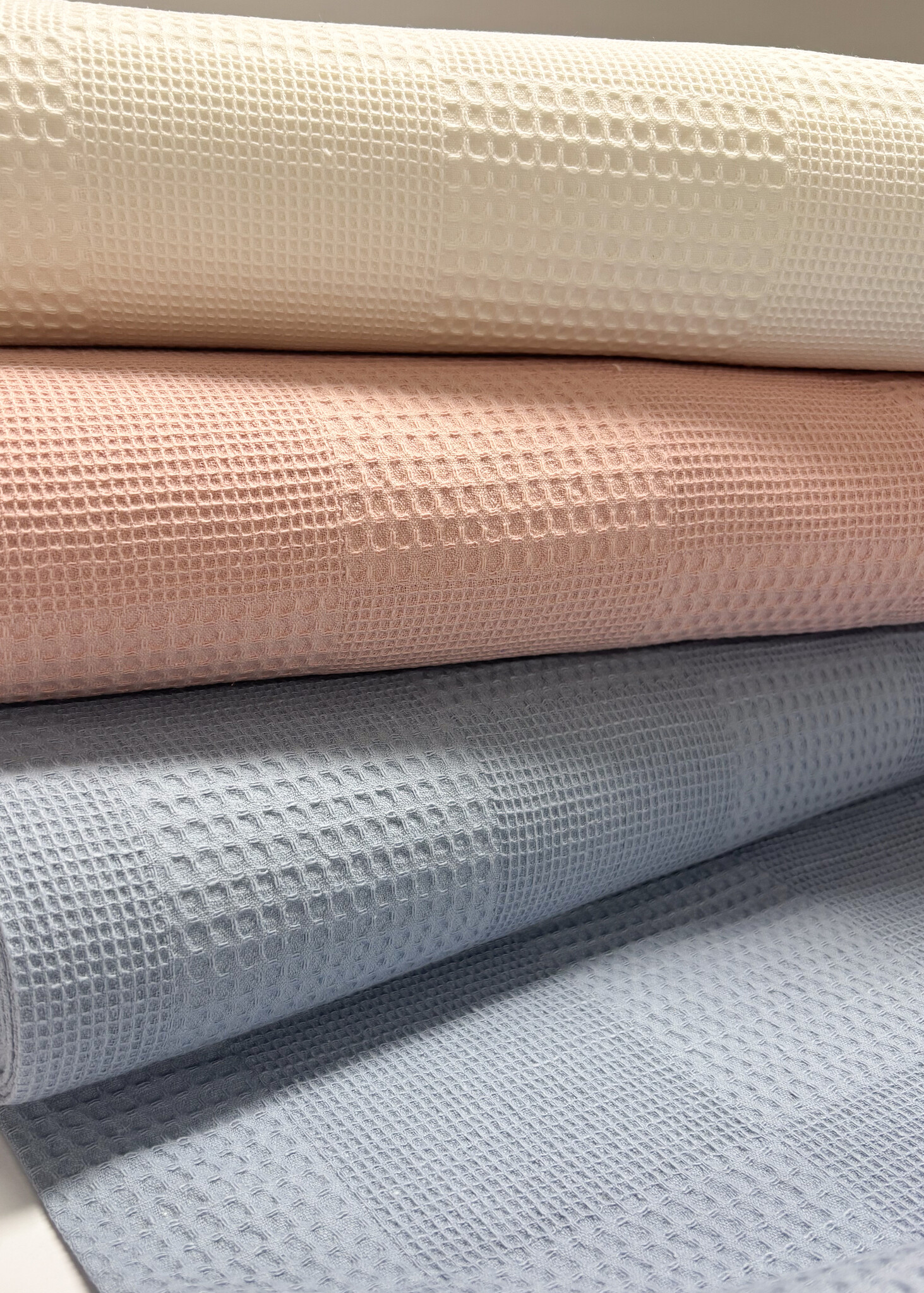 A soft waffle cotton. Perfect for baby items. OEKO-tex.