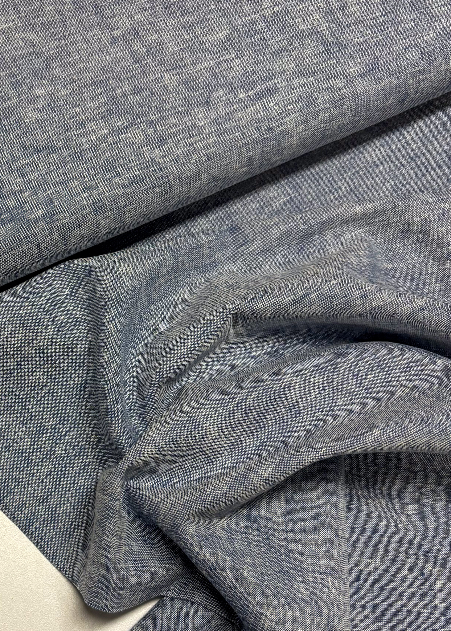A soft linen cotton mix (chambray). Perfect for trousers, dresses, blouses, ...