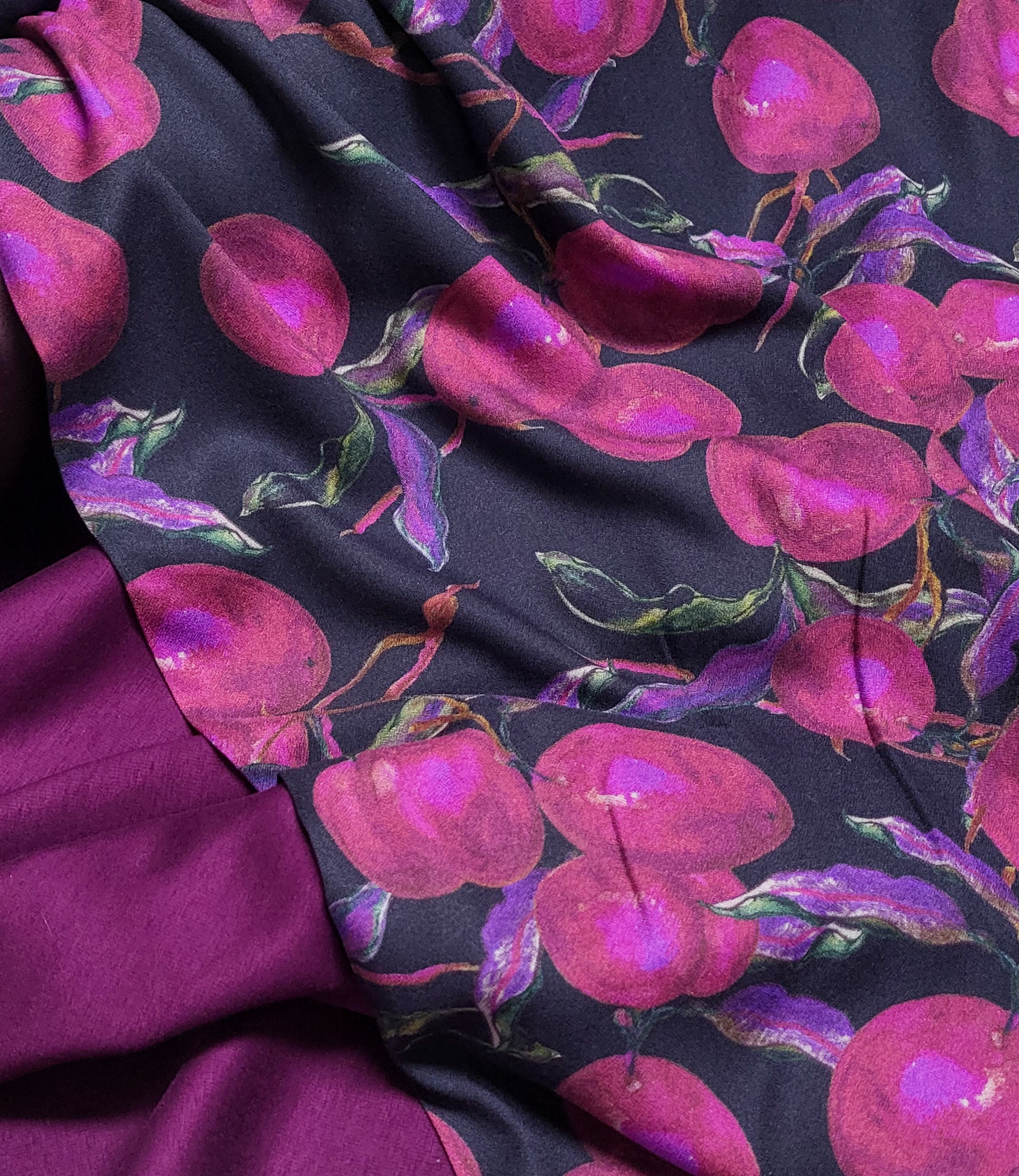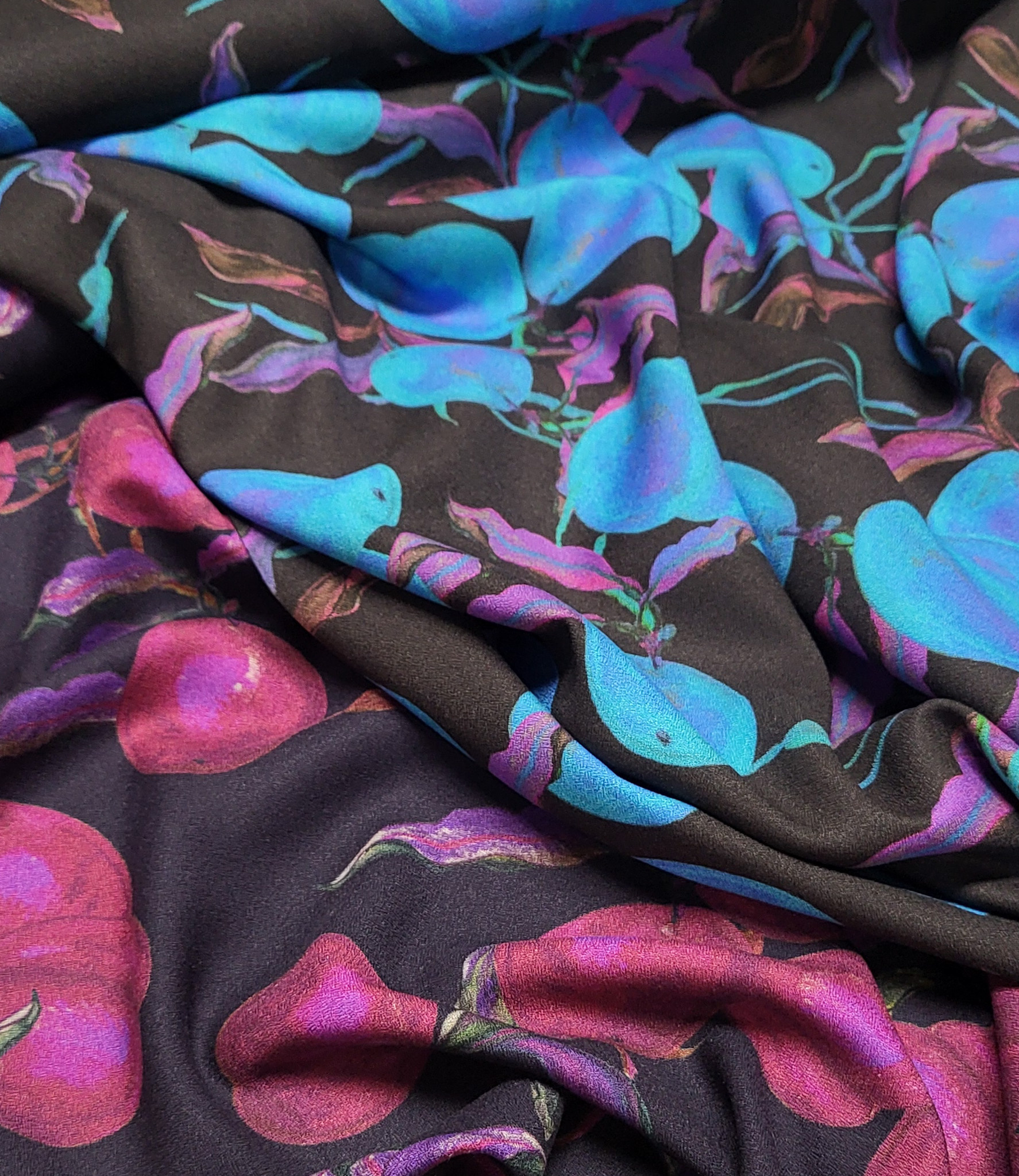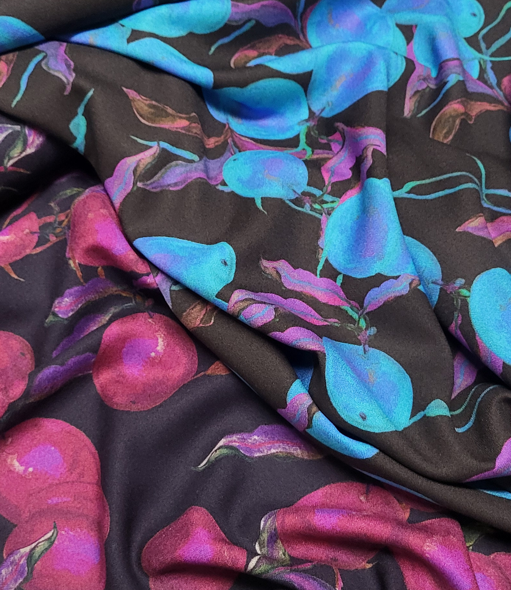 A beautiful Italian woven viscose fabric, designed by Marylene Madou for A la Ville. It makes the most beautiful blouses, dresses, skirts, trousers, and separate trouser suits.