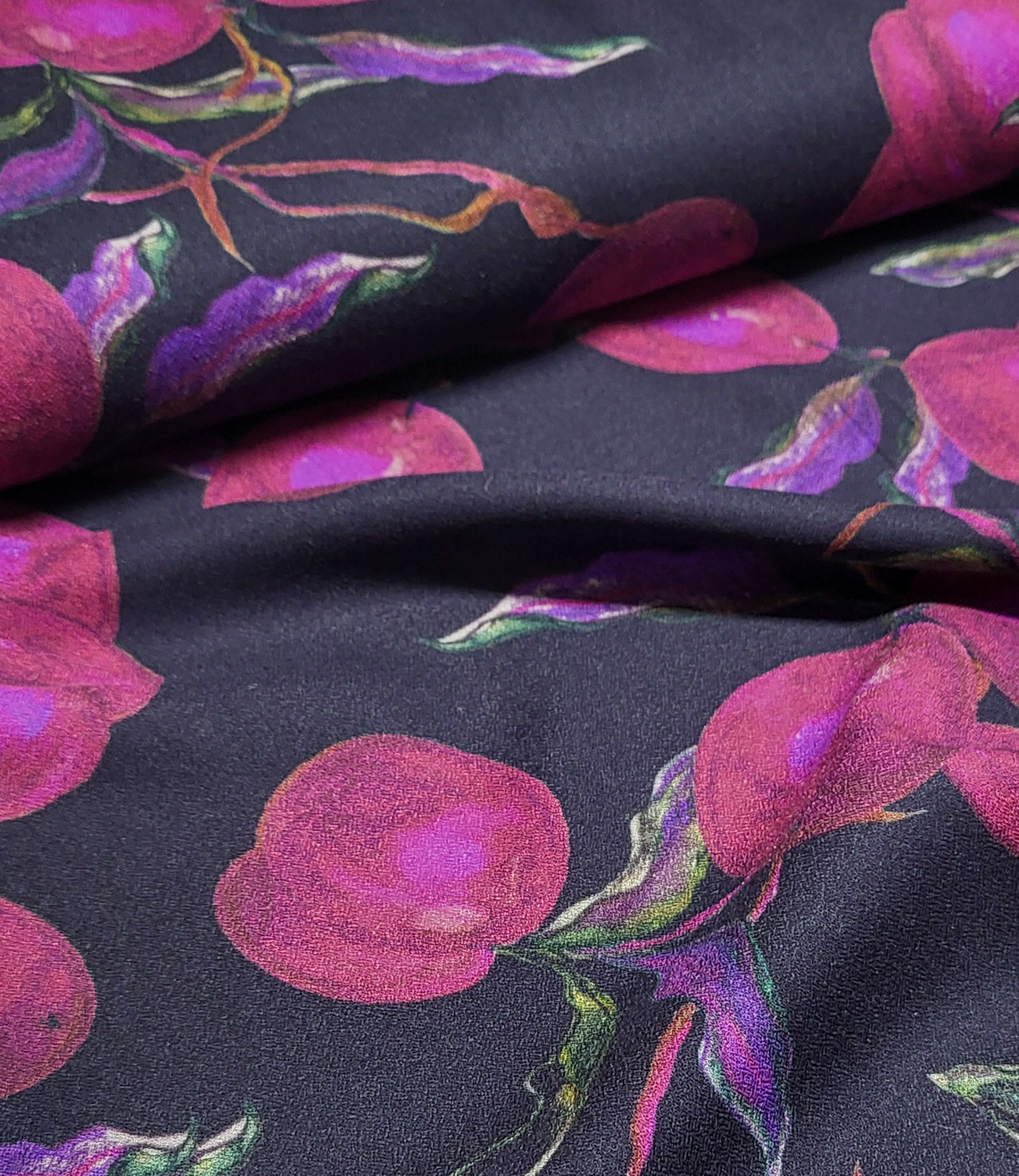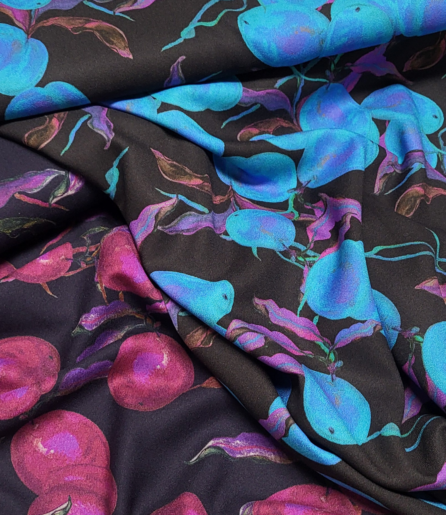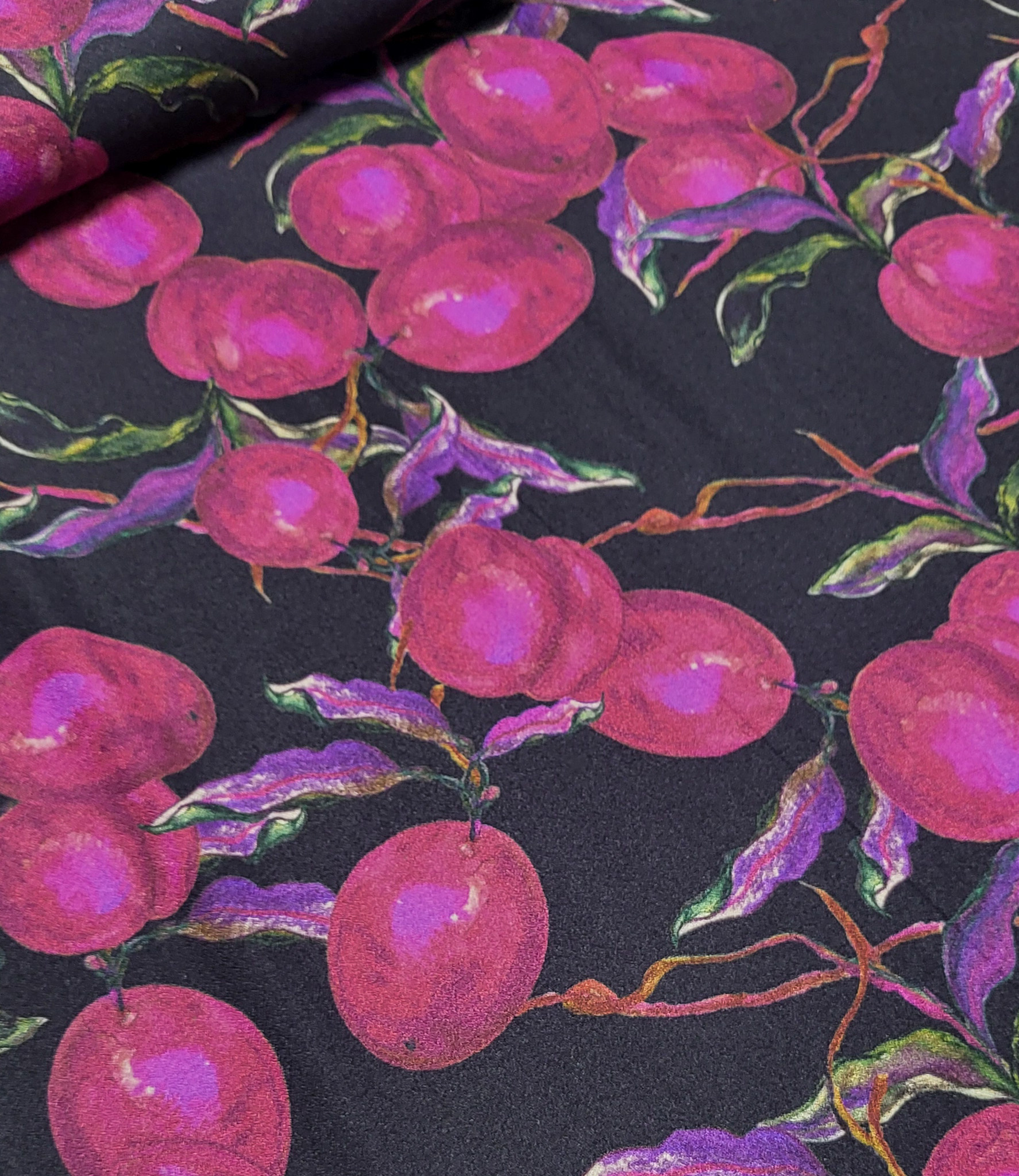 A beautiful Italian woven viscose fabric, designed by Marylene Madou for A la Ville. It makes the most beautiful blouses, dresses, skirts, trousers, and separate trouser suits.