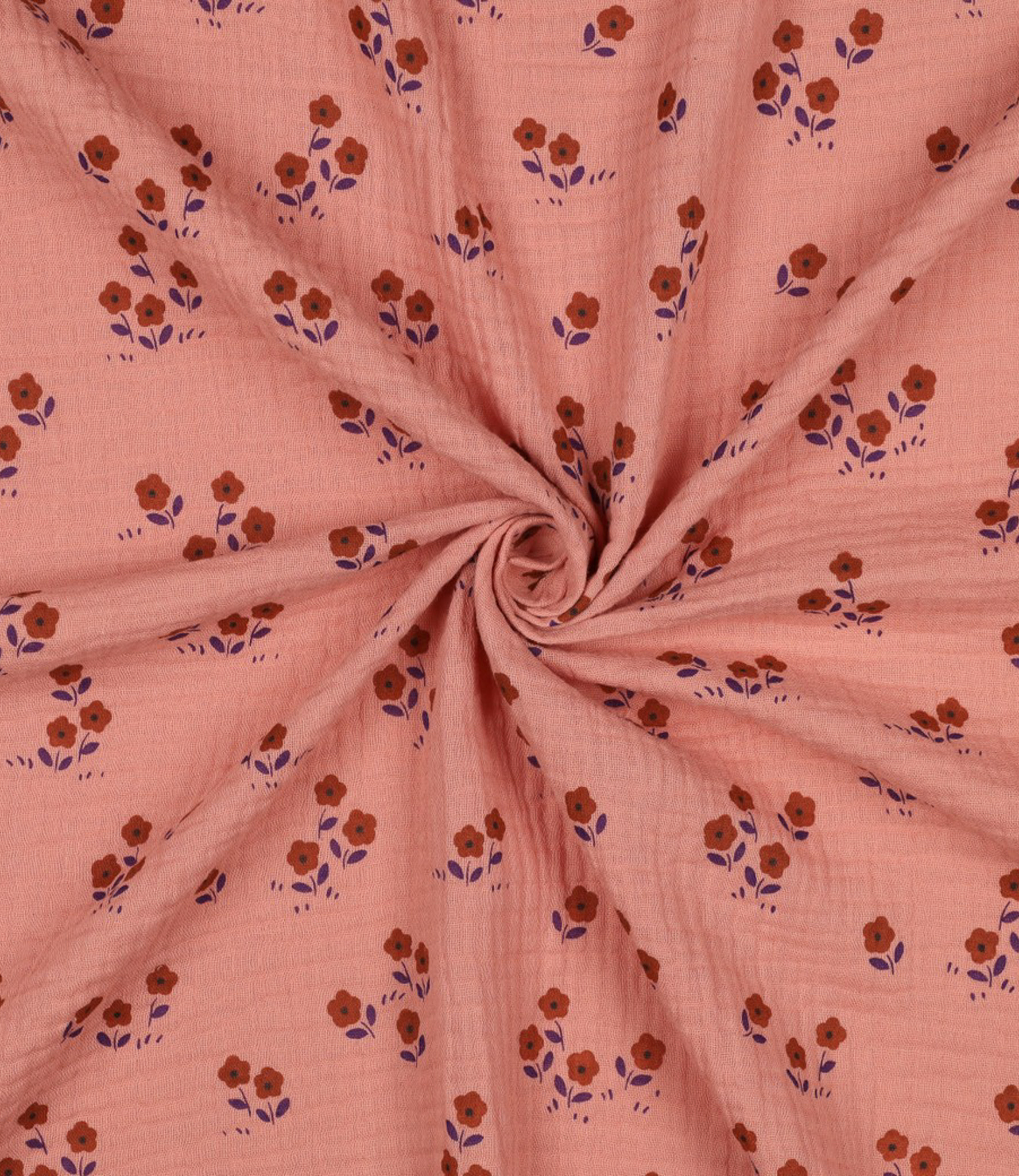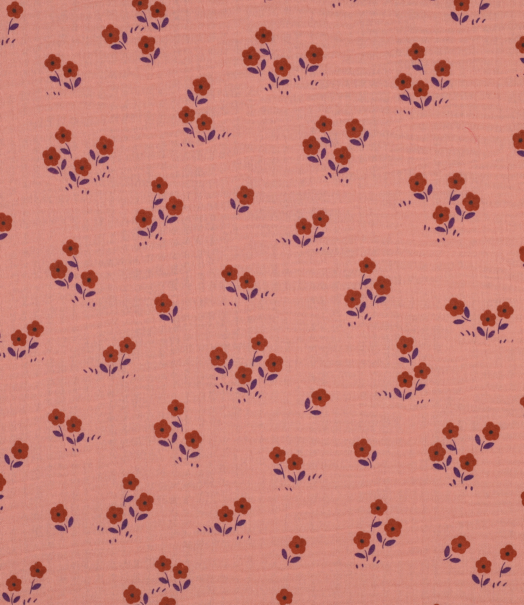 Beautiful quality double gauze with floral details. Perfect for dresses, tops, T-shirts, and baby and children's items (nests, blankets, etc.). Wonderfully soft. OEKO-Tex certified.