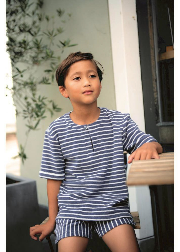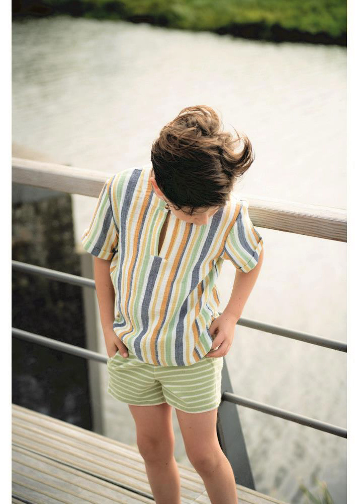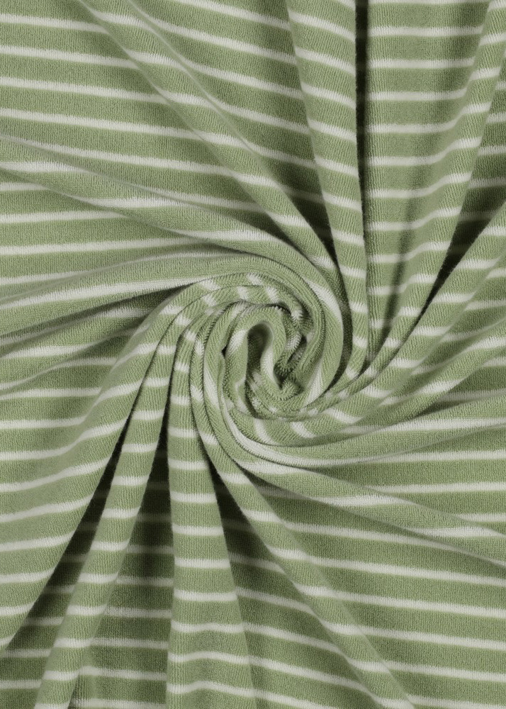 Beautiful quality stretch terry cloth with stripes. Perfect for baby and children's items. Wonderfully soft.