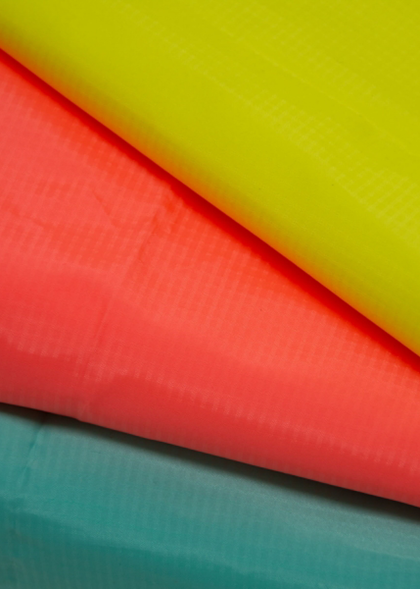 Polyripstop is a tear-resistant waterproof fabric because it has thicker, high-strength threads woven through it. This fabric stands out for its lightness, resistance, durability and anti-tear properties. This Neon Polyripstop fabric from Katia Fabrics is ideal for making sportswear such as trousers, jackets and waterproof clothing.