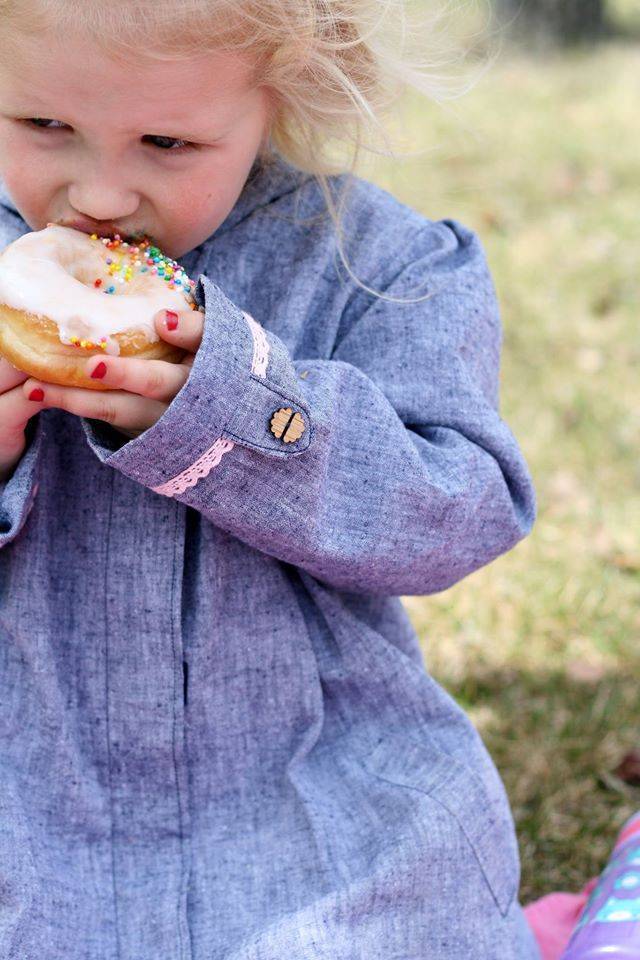 The coat is fully lined and has facings for a professional finish inside. The sleeves have a decorative seam near the hem, inviting you to add a creative touch with a tab, piping, ricrac, or contrasting fabric.