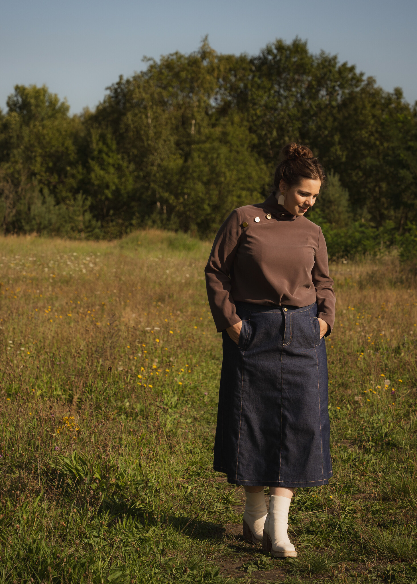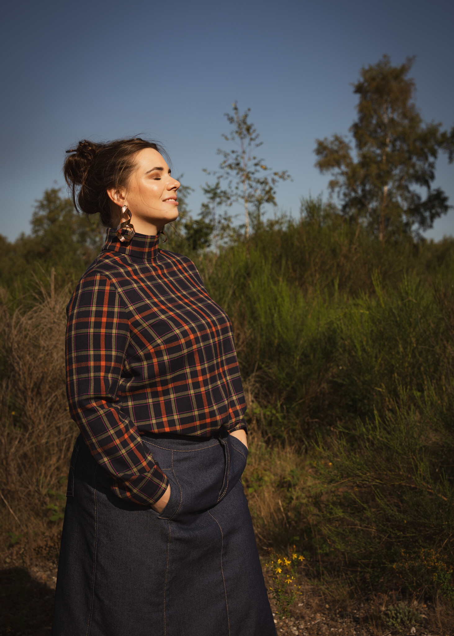 The Ellie blouse is made from a supple fabric of medium weight. This can be done with or without a small percentage of elastane.