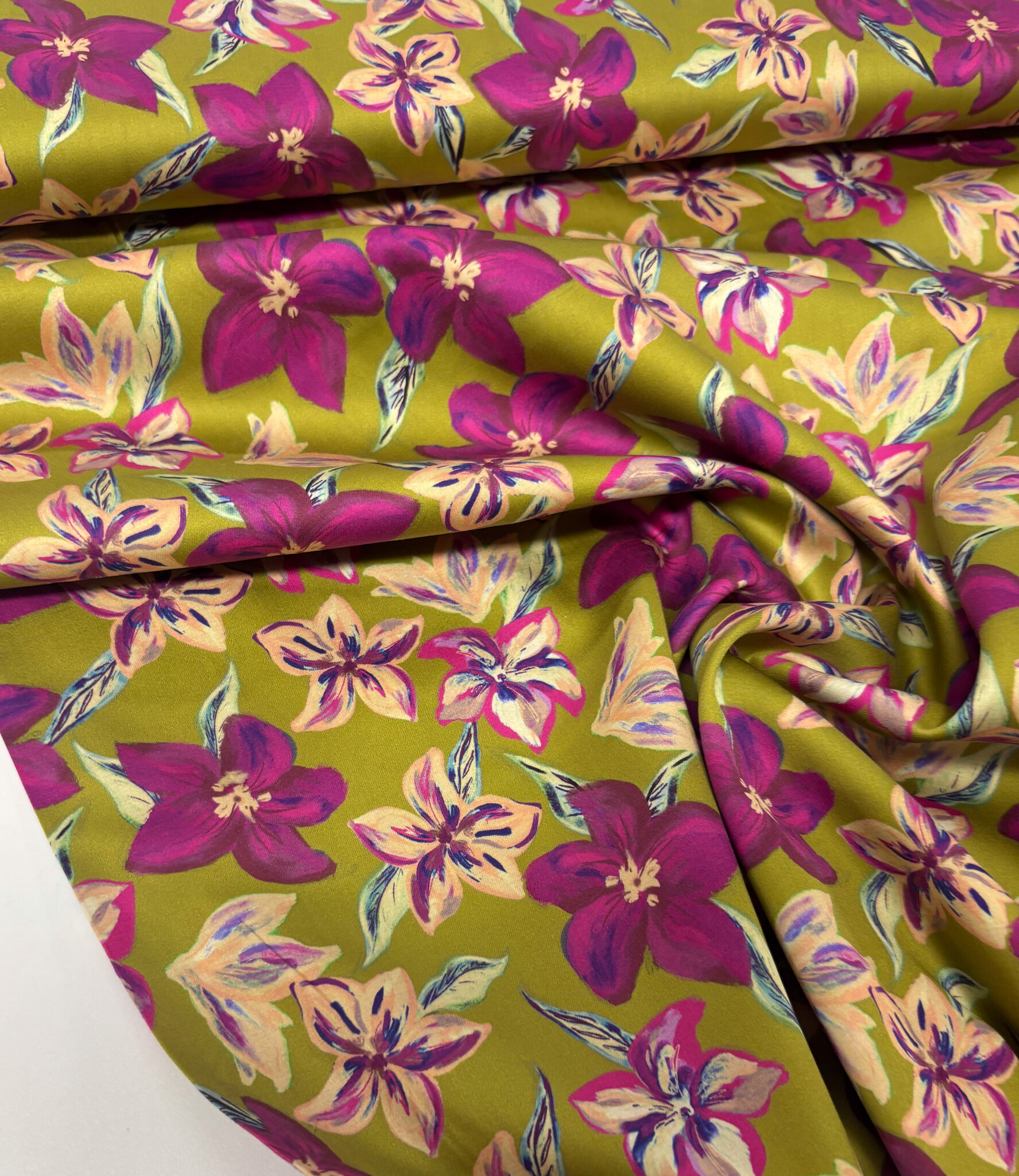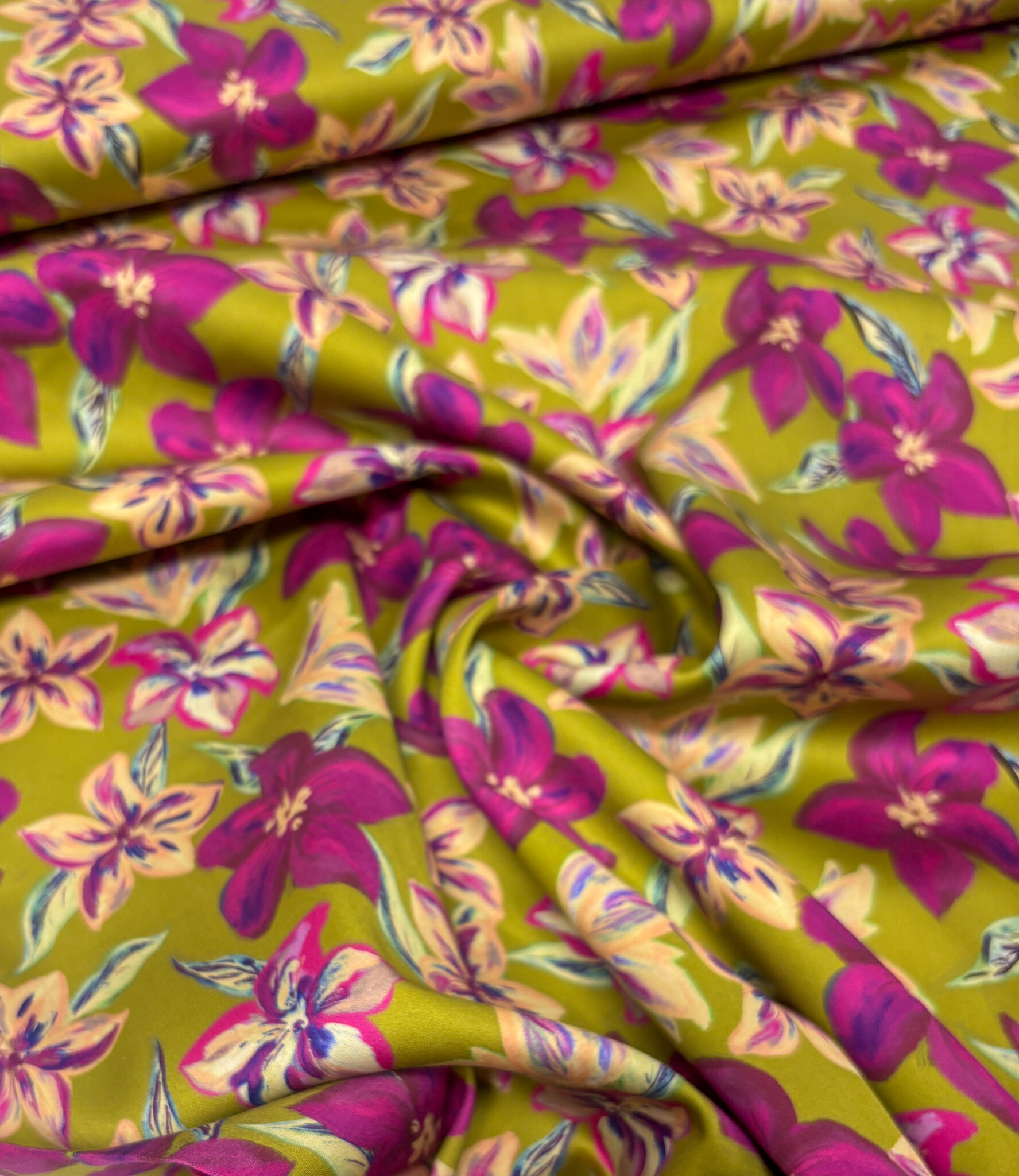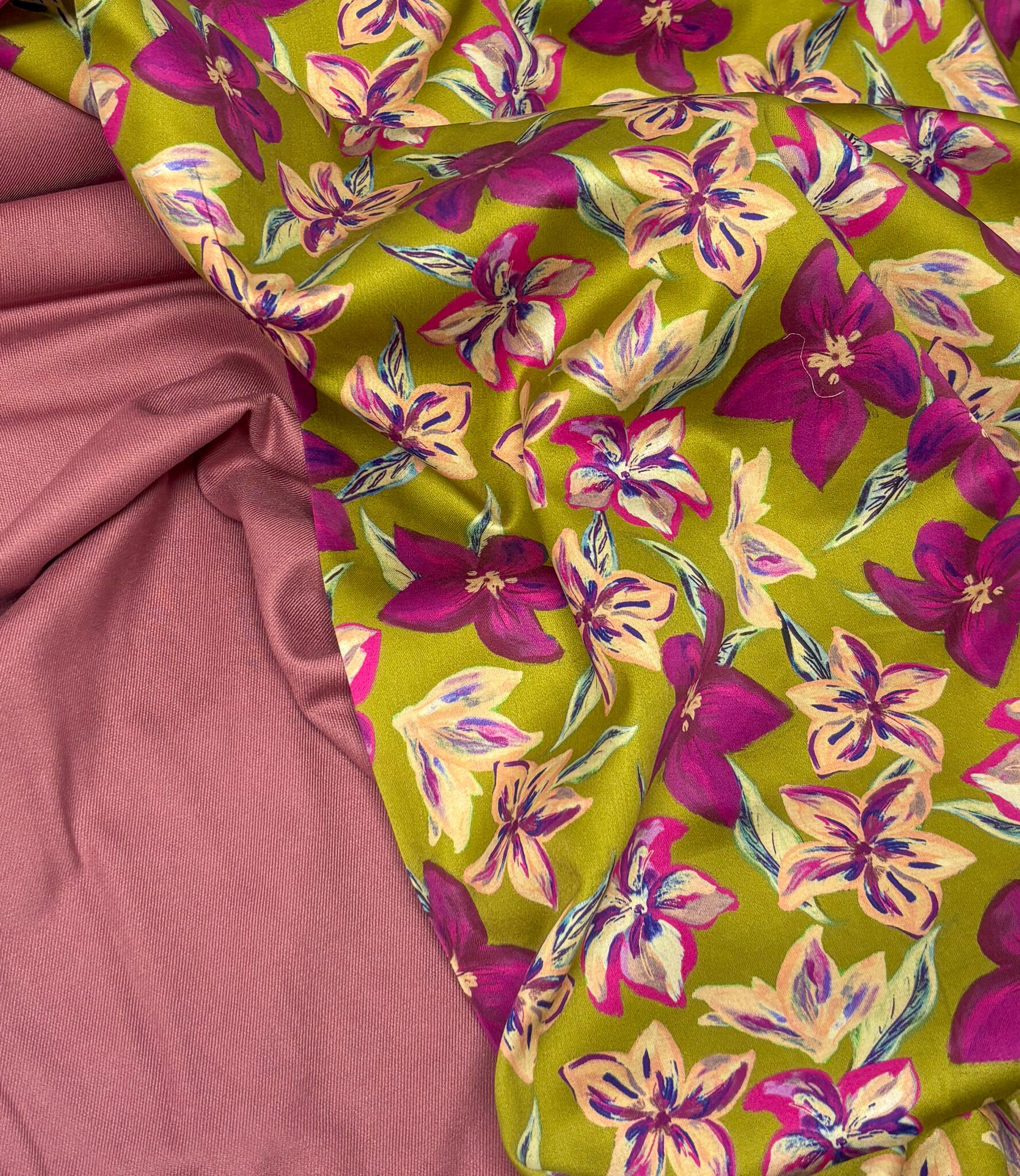 A satin cotton with flowers.