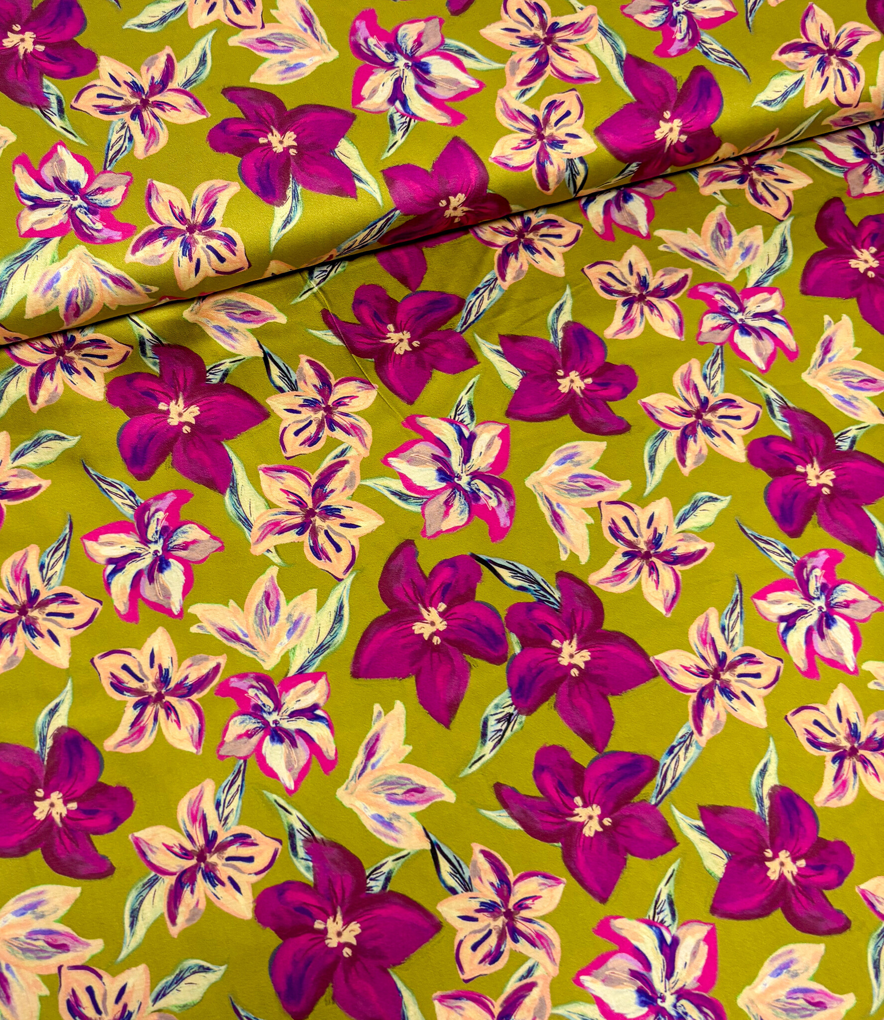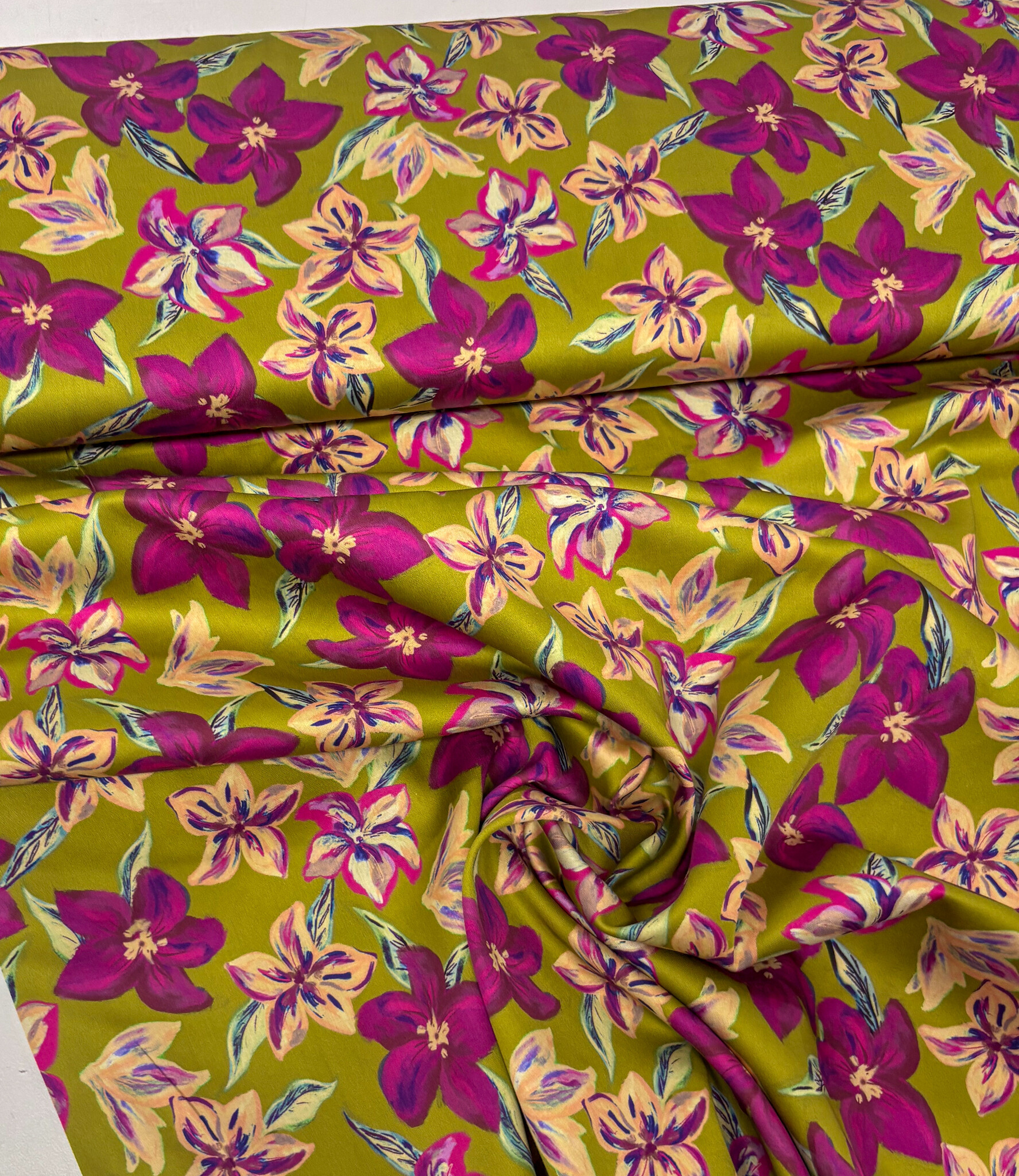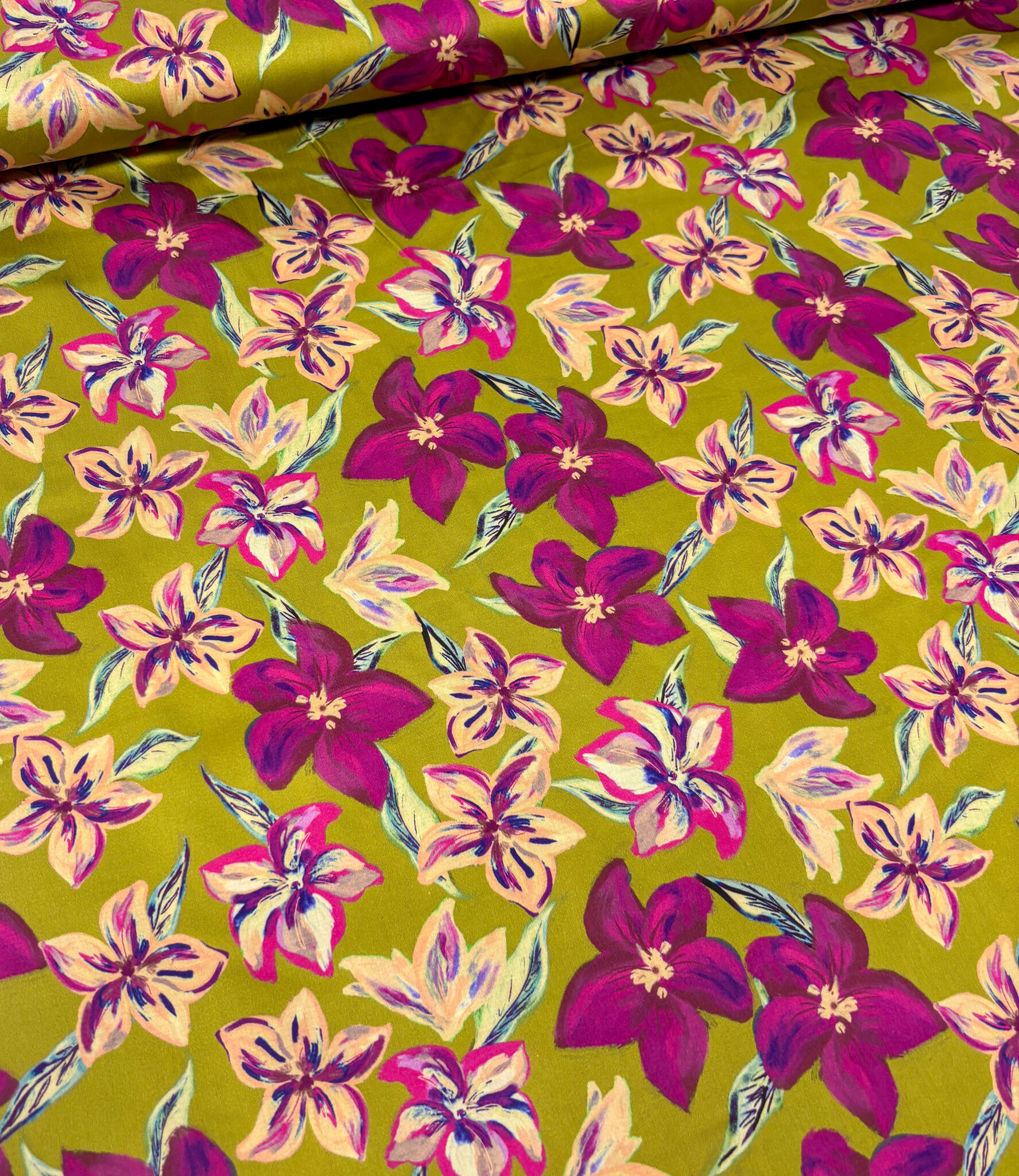A satin cotton with flowers.