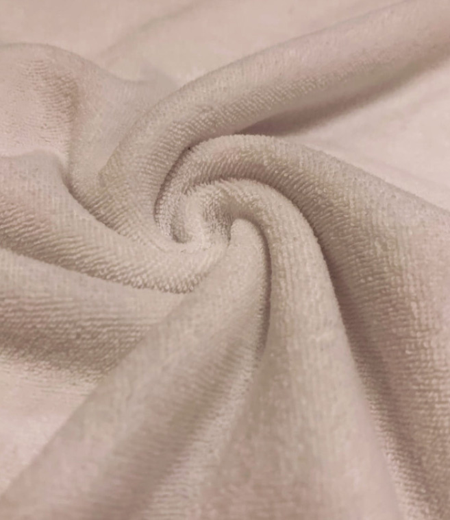 A stretchy terry cloth/sponge in a natural color. Made of 100% cotton.