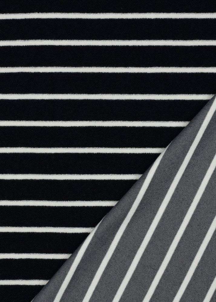 navy blue ecru striped - sponge stretch terry cloth - Madeline De Stoffenmadam