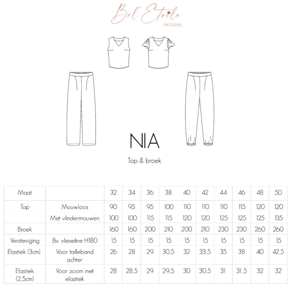 Nia is a combination of a loose-fitting top with bust darts (darts) and stylish trousers.