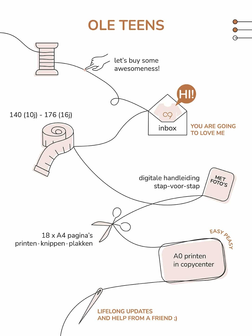 How does it work? Very simple, you order it this way or buy it in our store. You will receive the patterns and manual from us by email. Would you like to receive the pattern on A0 paper? That is also possible, with our A0 printer we will print it out for you immediately. Just click this while ordering.