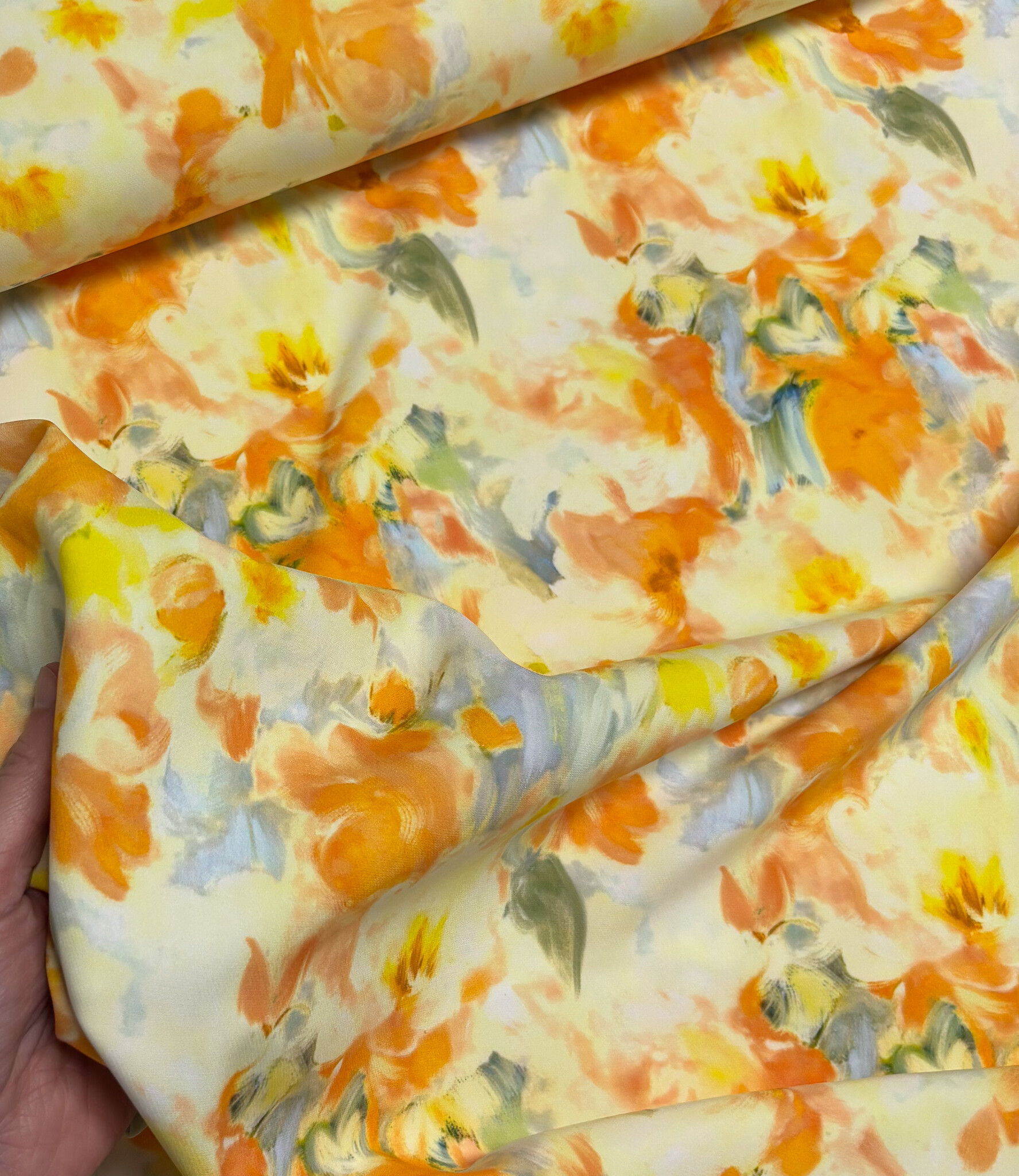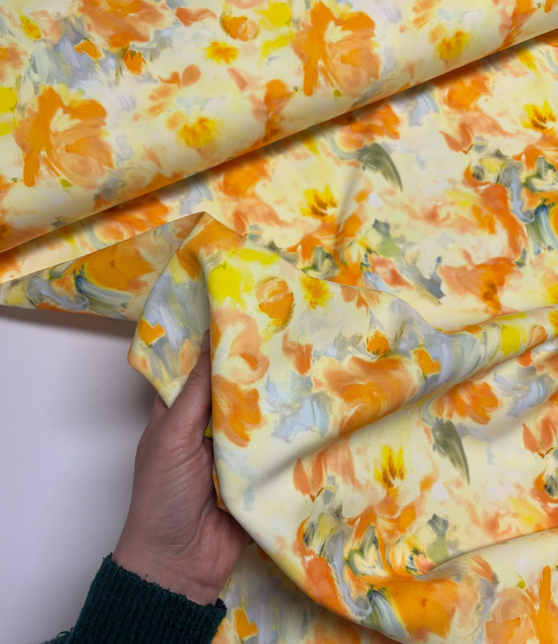 orange/yellow print - stylish woven fabric - wrinkle-free - high quality (Italy) - Madeline De Stoffenmadam