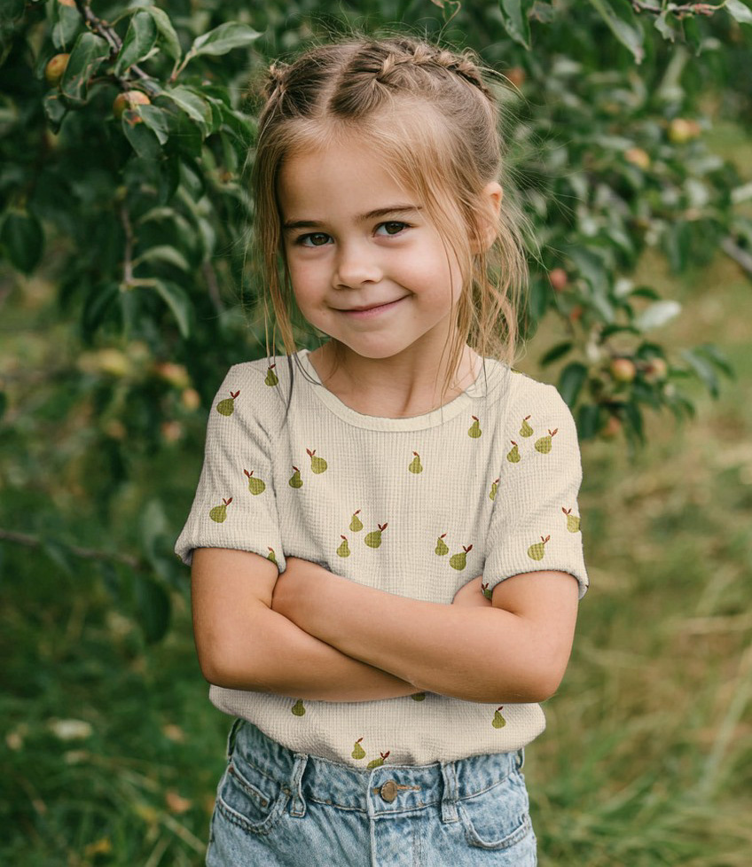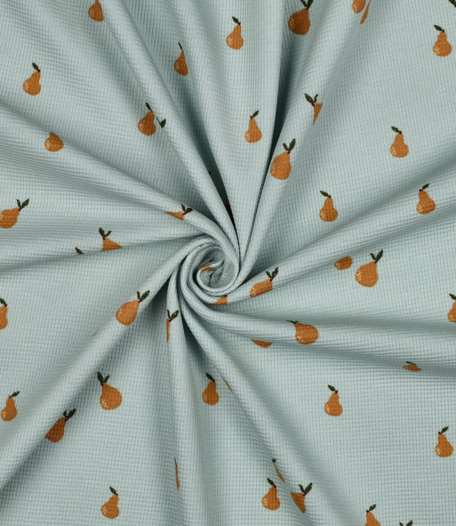 A waffle knit with pears.