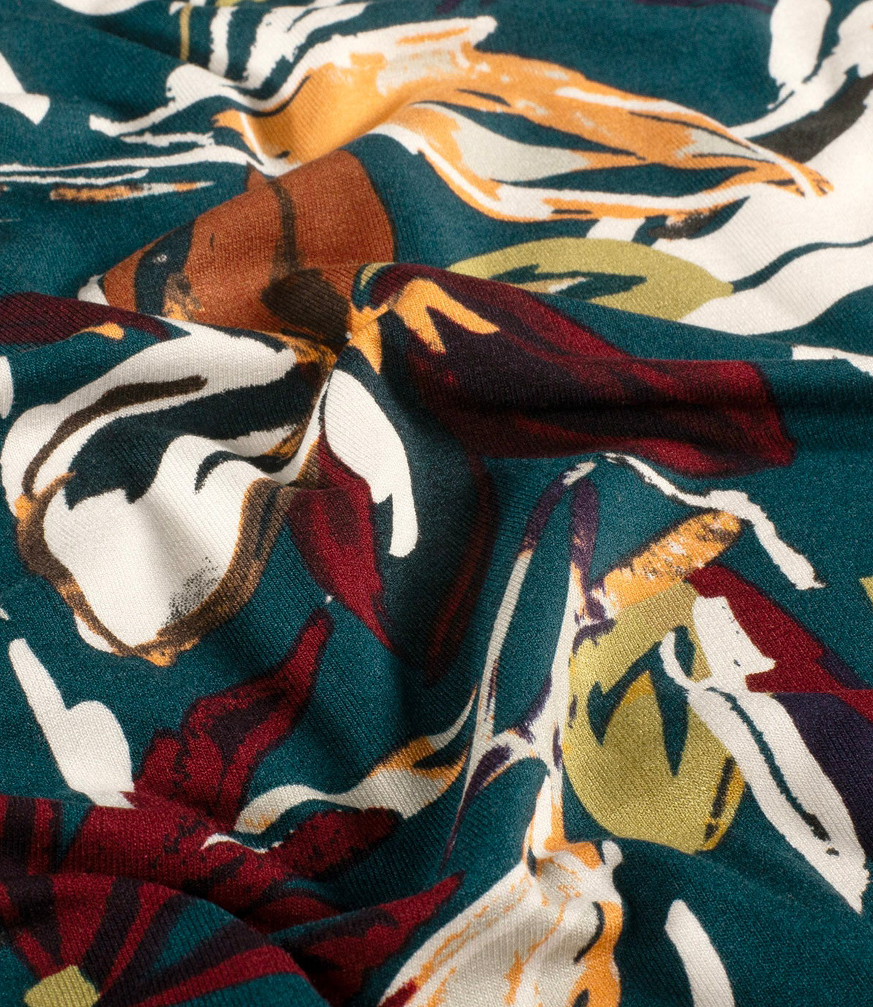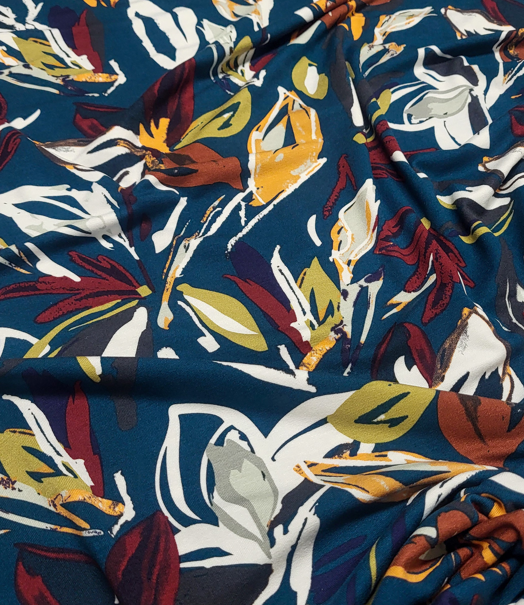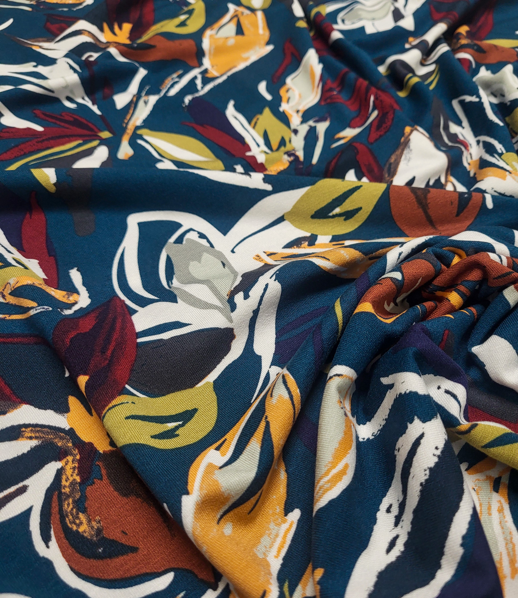 petrol green and beautiful flowers - viscose jersey - Madeline De Stoffenmadam